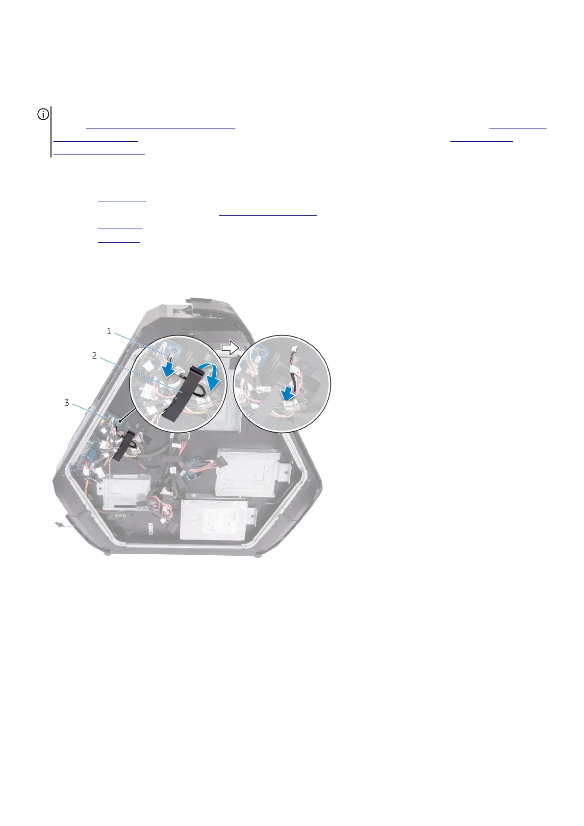 2. Open the securing clips which secure the optical-drive eject-button board cable to the chassis.
