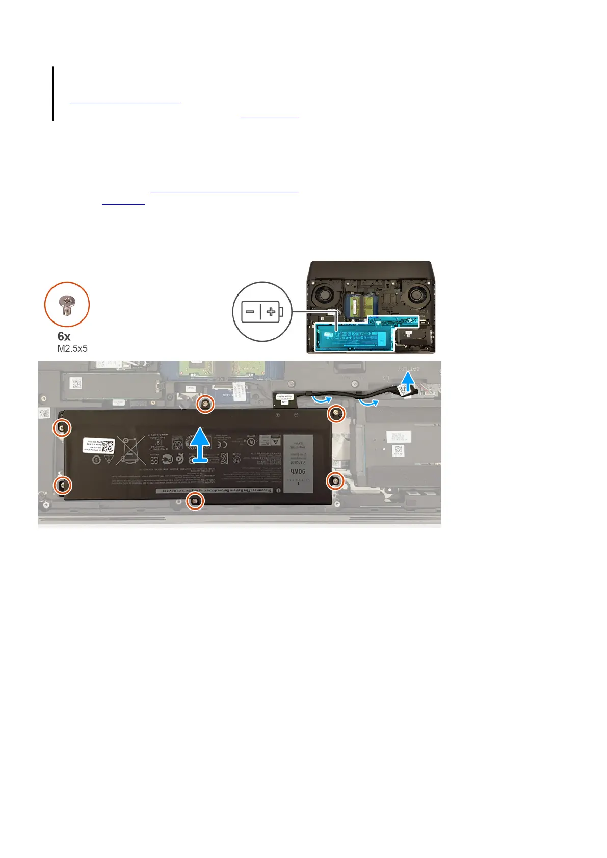 2. Remove the six screws (M2.5x5) that secure the battery to the palm-rest assembly.