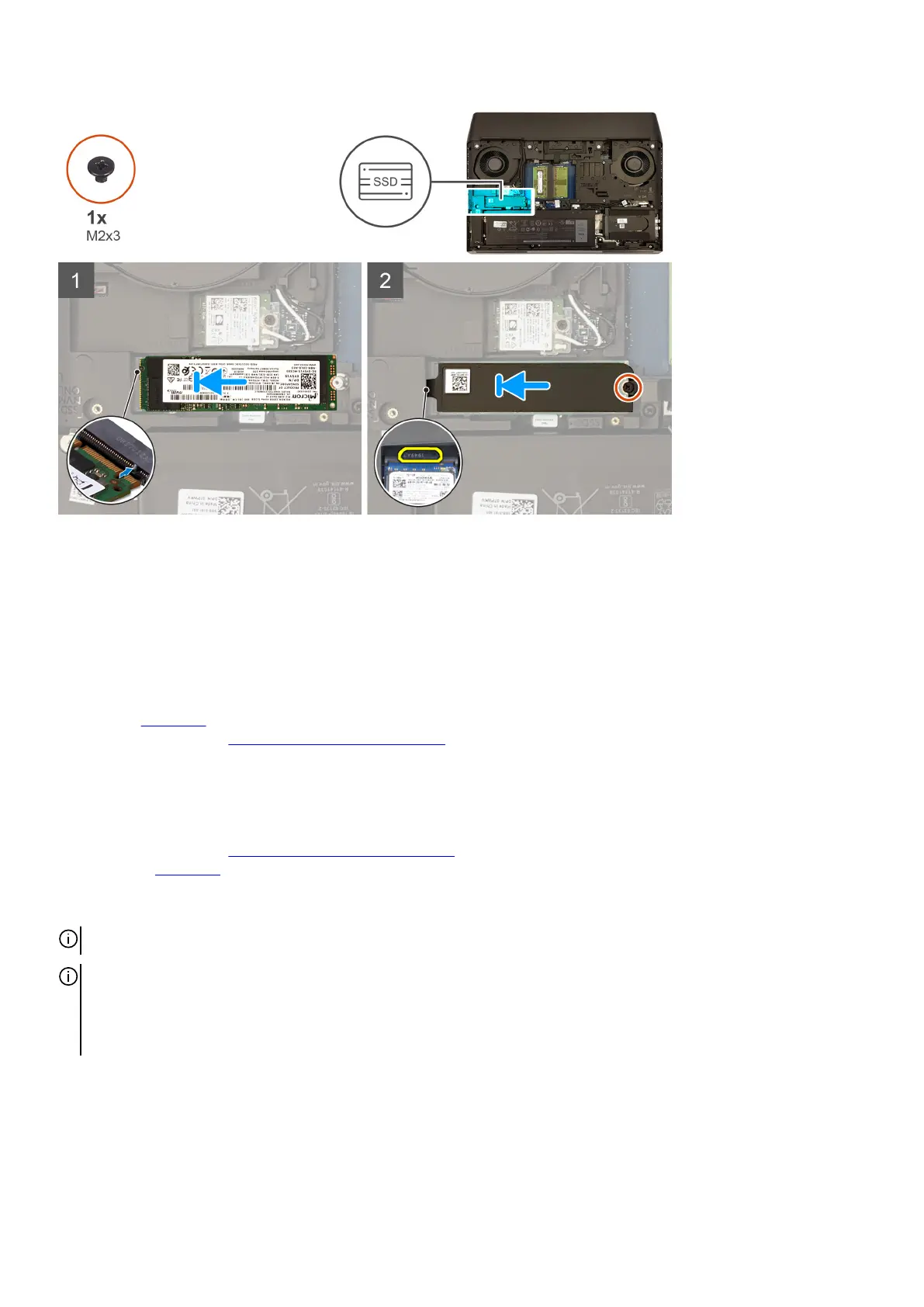 5. Replace the screw (M2x3) that secures the solid-state drive and the thermal shield to the computer base.