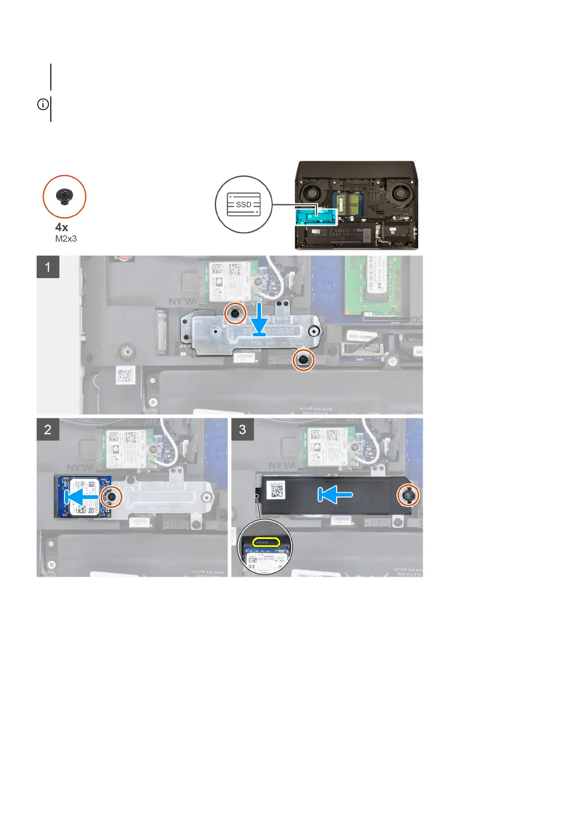 NOTE: Install the solid-state drive to the M.2 slot one before installing the solid-state drive to the M.2 slot two on the