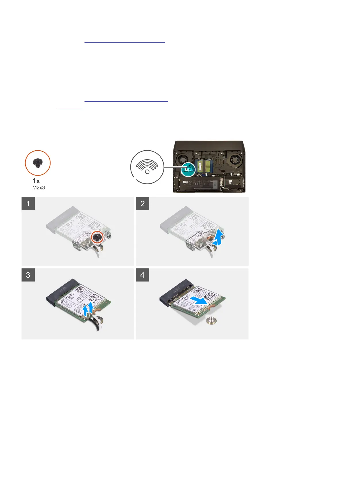 1. Remove the screw (M2x3) that secures the wireless-card bracket to the system board.