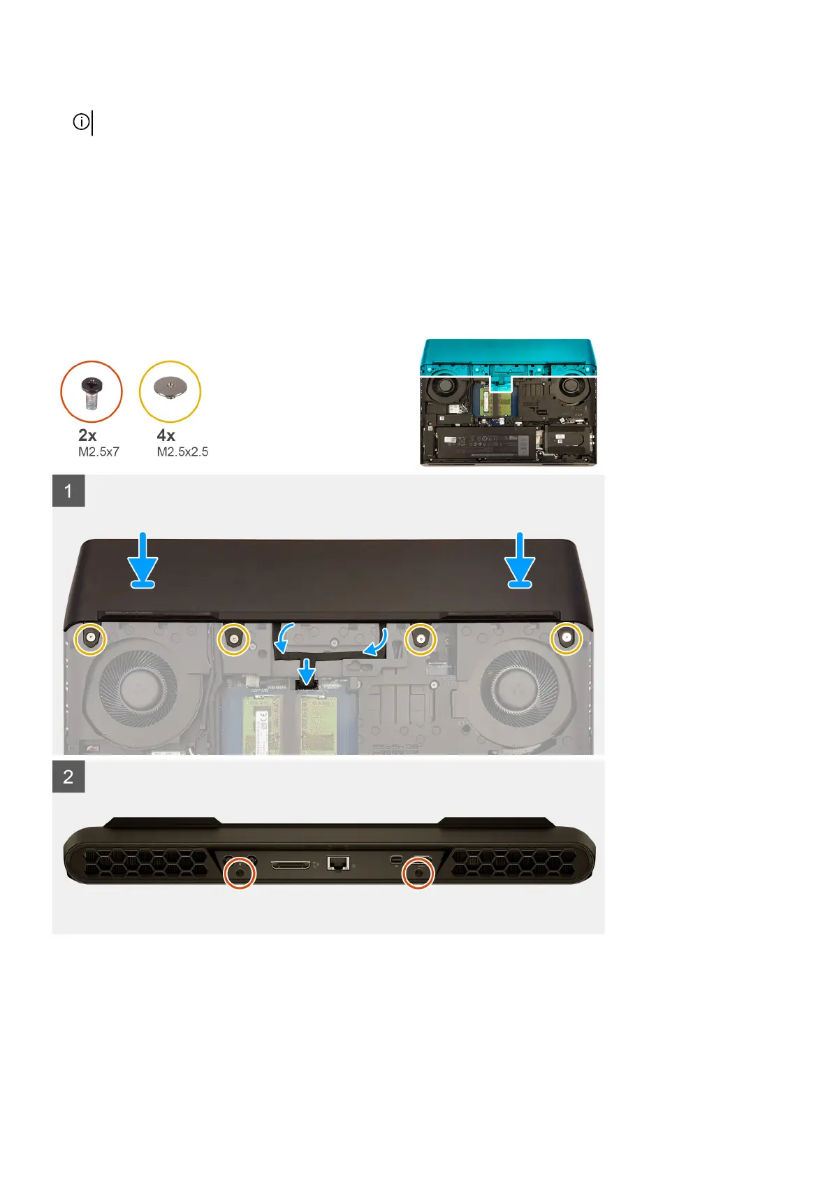 3. Replace the two screws (M2.5x7) that secure the rear-I/O cover to the palm-rest assembly.