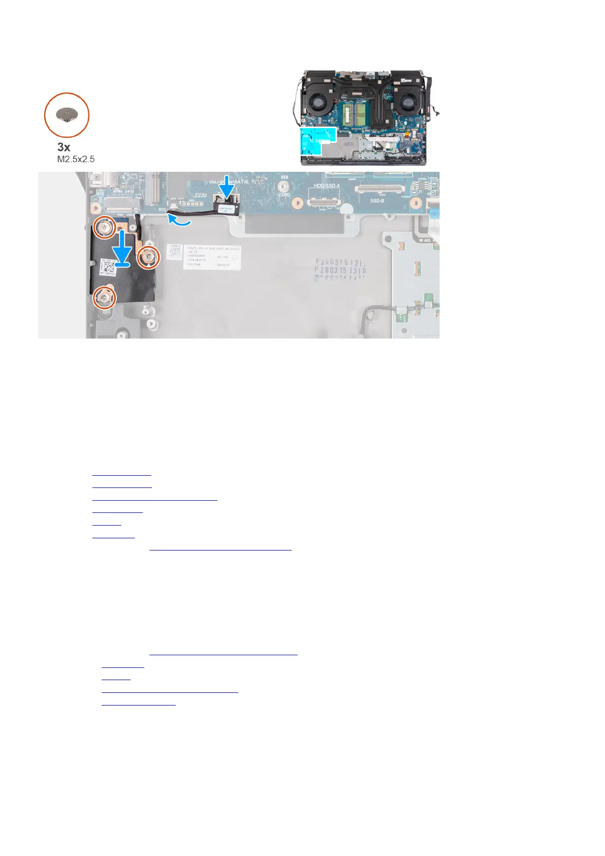 3. Replace the three screws (M2.5x2.5) that secure the card-reader board to the palm-rest assembly.
