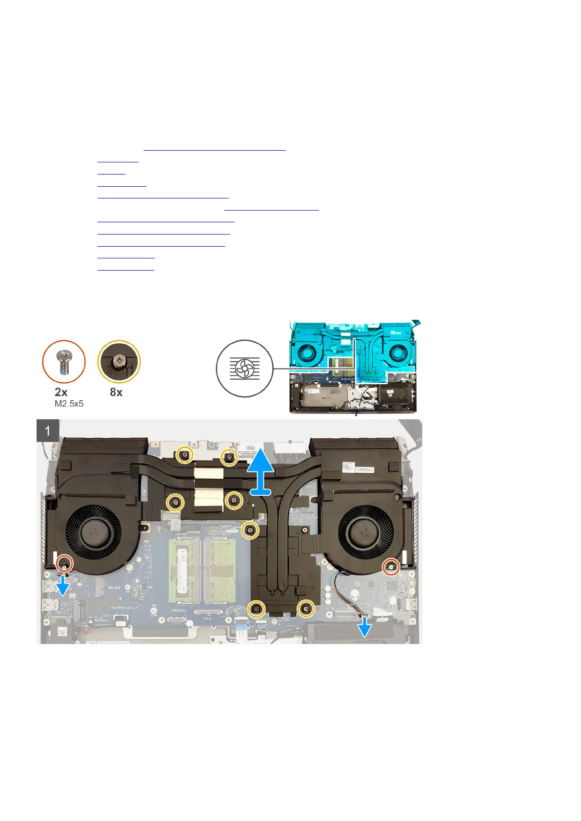 2. Remove the two screws (M2.5x5) that secure the heat-sink assembly to the palm-rest assembly.