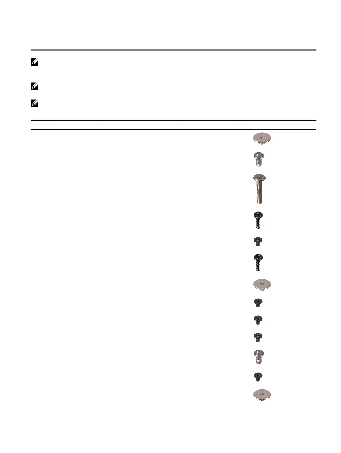 NOTE: Screw color may vary with the conguration ordered.