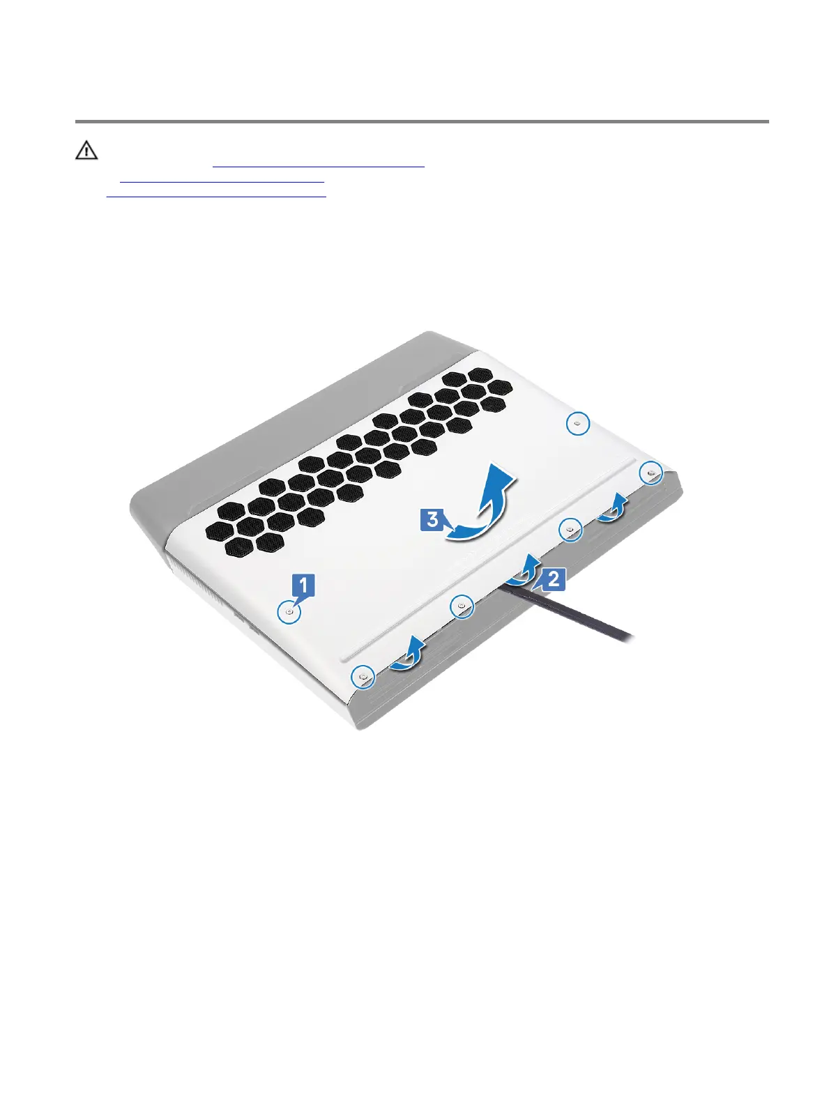 1 Loose the six captive screws that secure the base cover to the computer base.