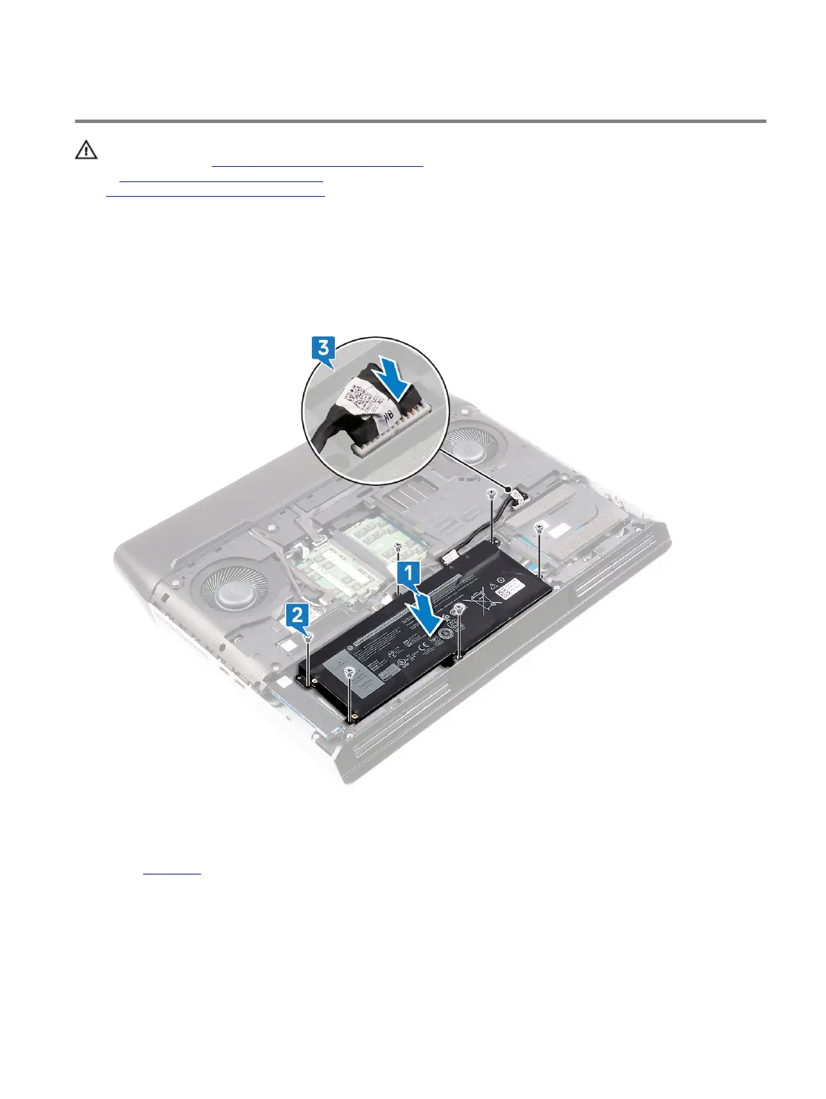 2 Replace the six screws (M2.5x5) that secure the battery to the palm-rest assembly.