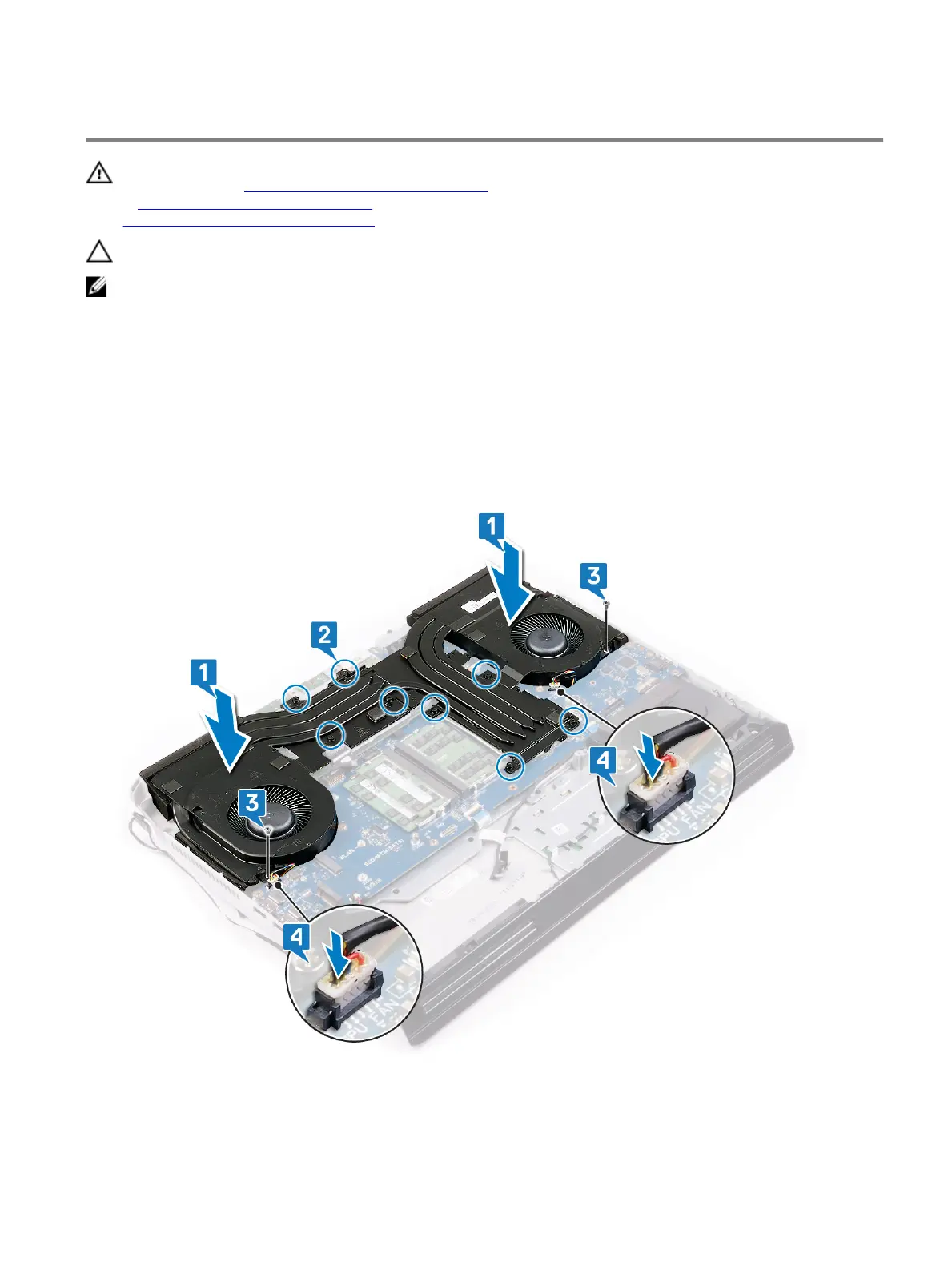 1 Place the heat-sink assembly on the palm-rest assembly and align the screw holes on the heat-sink assembly with the screw