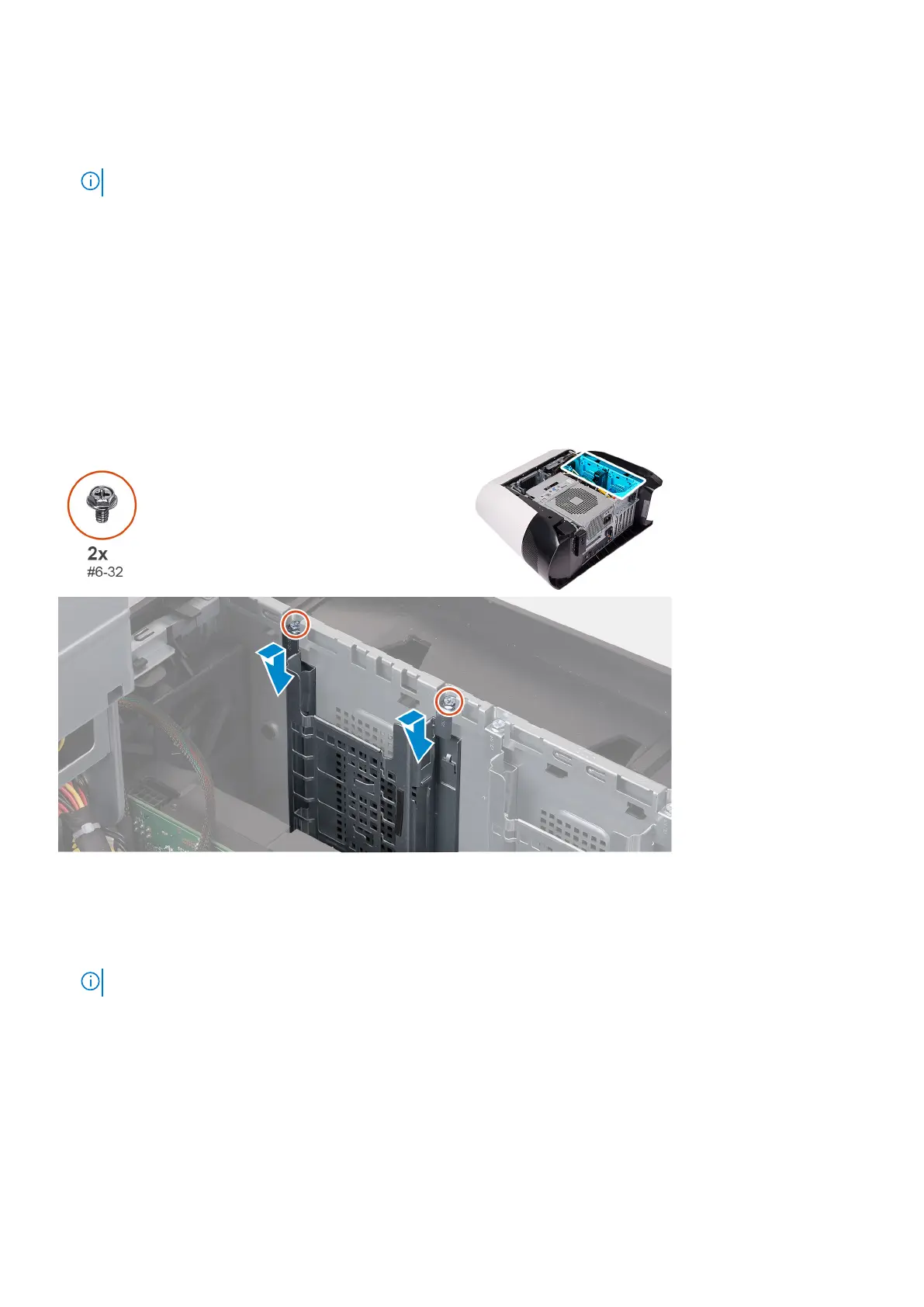3. Replace the two screws (#6-32) that secure the 2.5-inch hard-drive cage to the chassis.