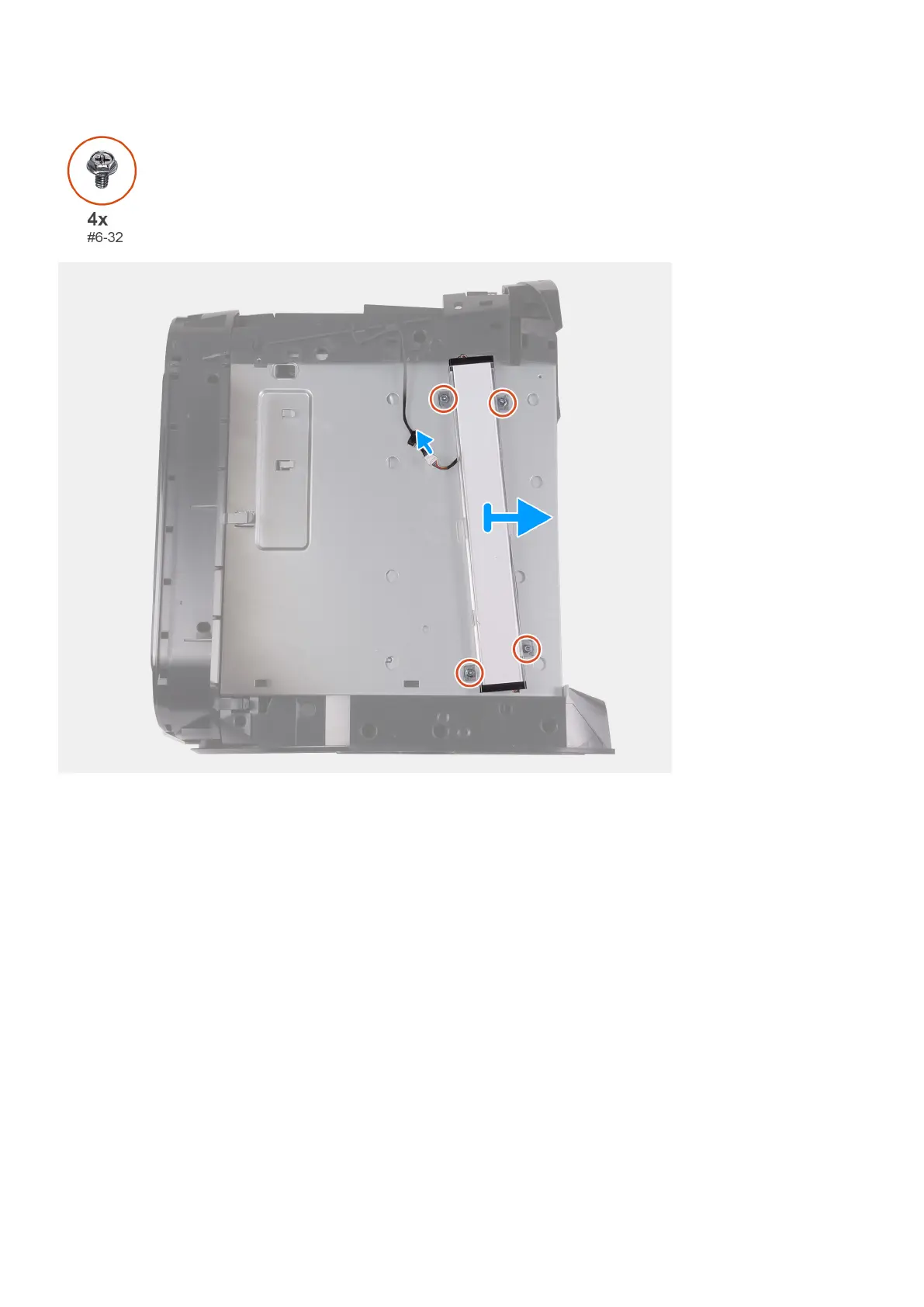 2. Távolítsa el a jobb oldali tron-light kártyát a számítógépházhoz rögzítő négy csavart (#6-32).