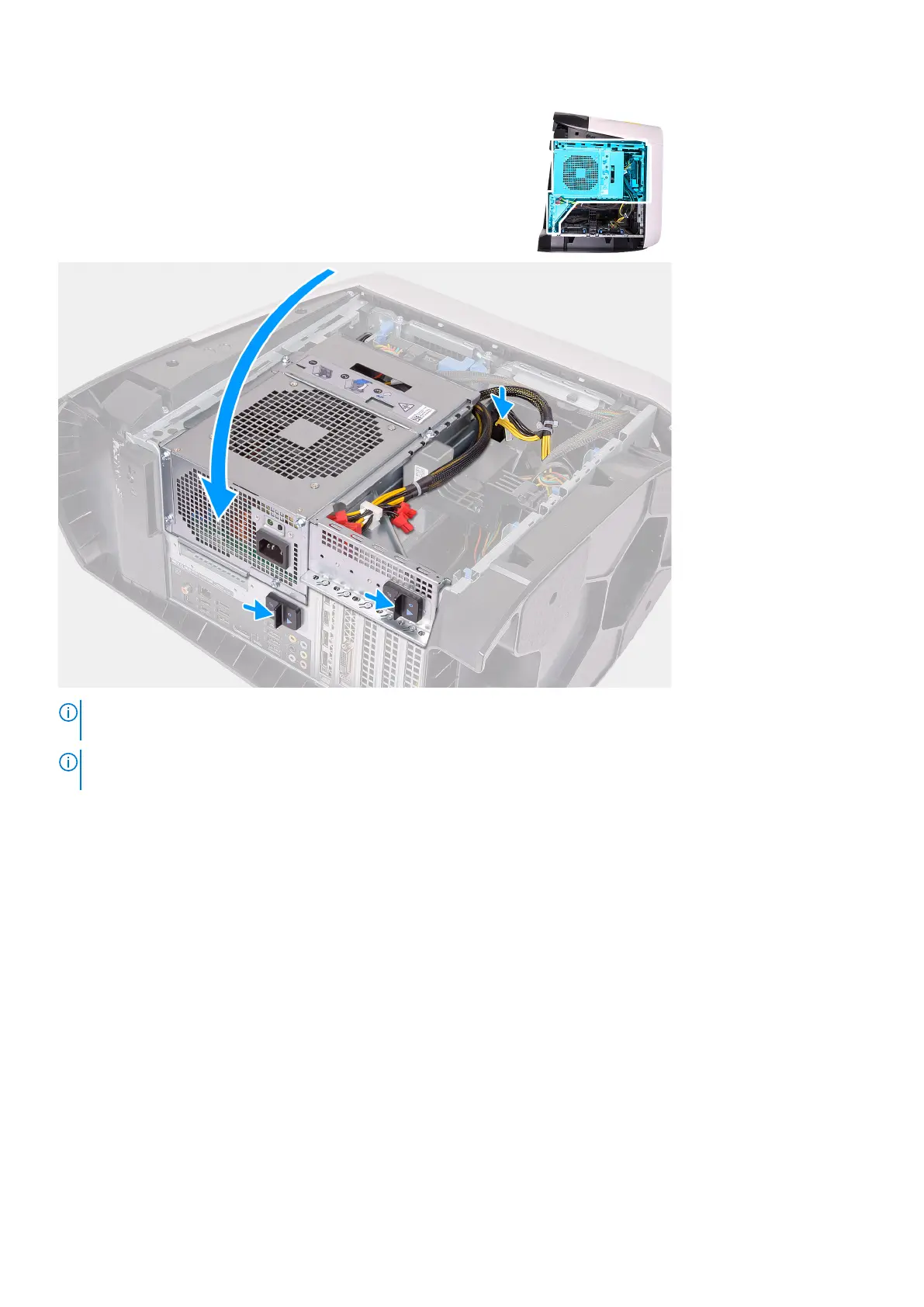 6. Slide the power-supply unit cage release latches towards the locked position.