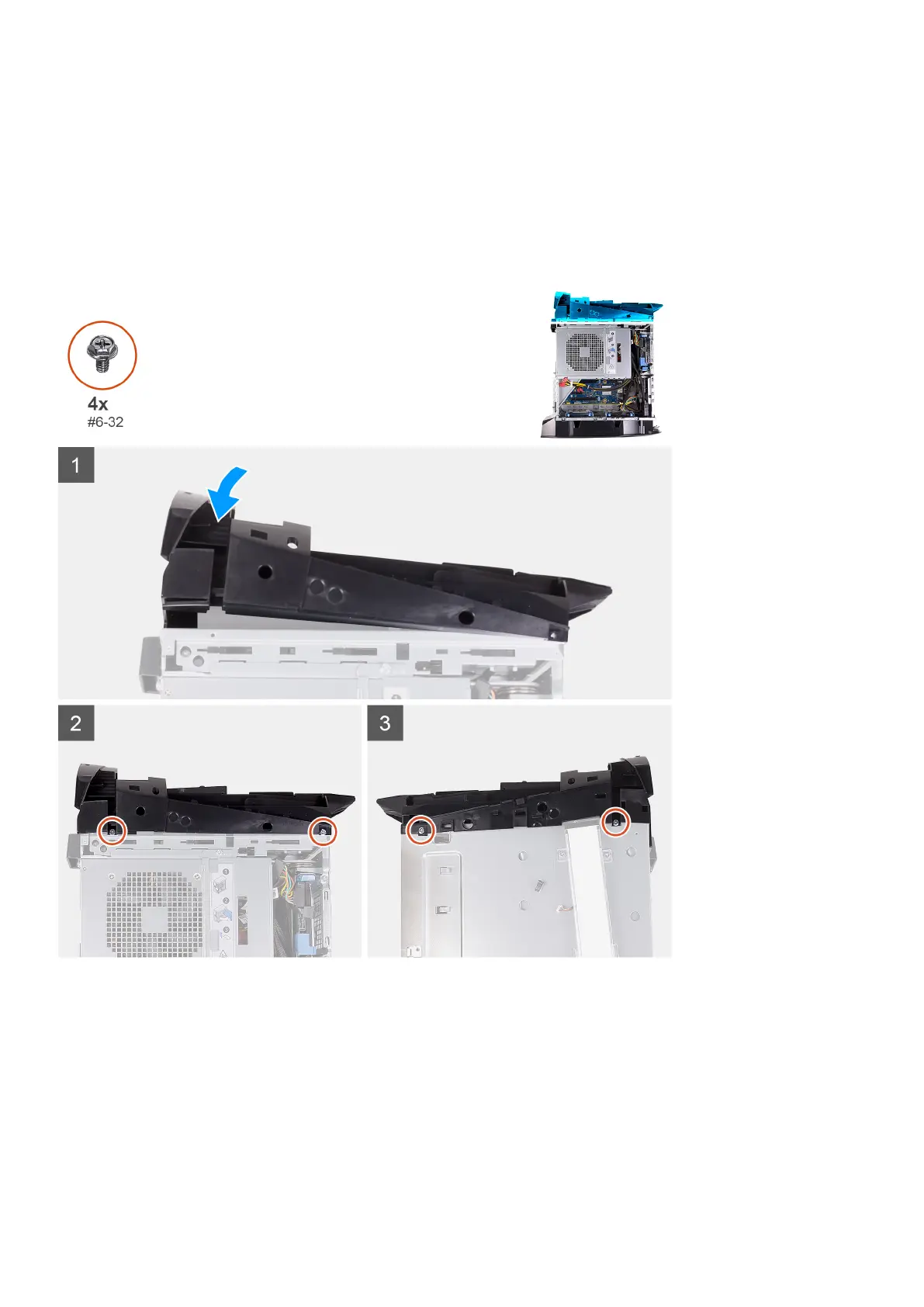 3. Hajtsa be a felső rácsot a ház jobb és bal oldalához rögzítő négy csavart (#6-32).