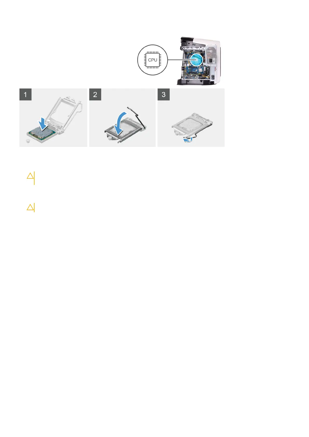 4. Pivot the release lever down and place it under the tab on the processor cover.