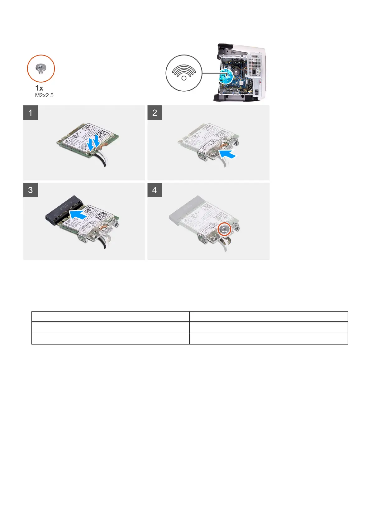 5. Replace the screw (M2x2.5) that secures the wireless card to the system board.