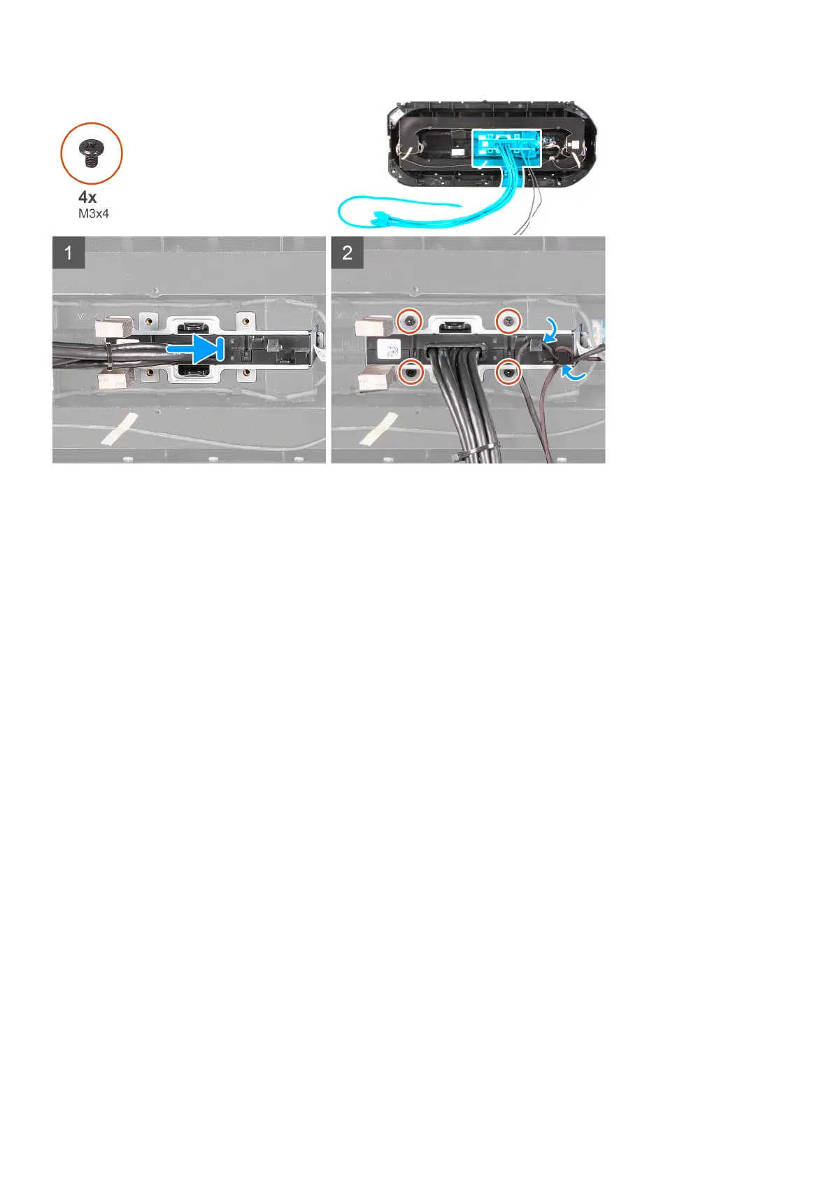 3. Replace the four screws (M3x4) that secures the front I/O-panel to the front bezel.