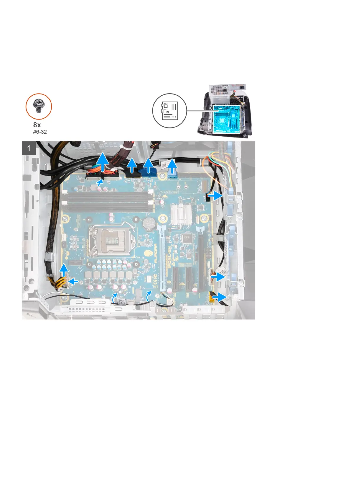 The following images indicate the location of the system board and provides a visual representation of the removal procedure.