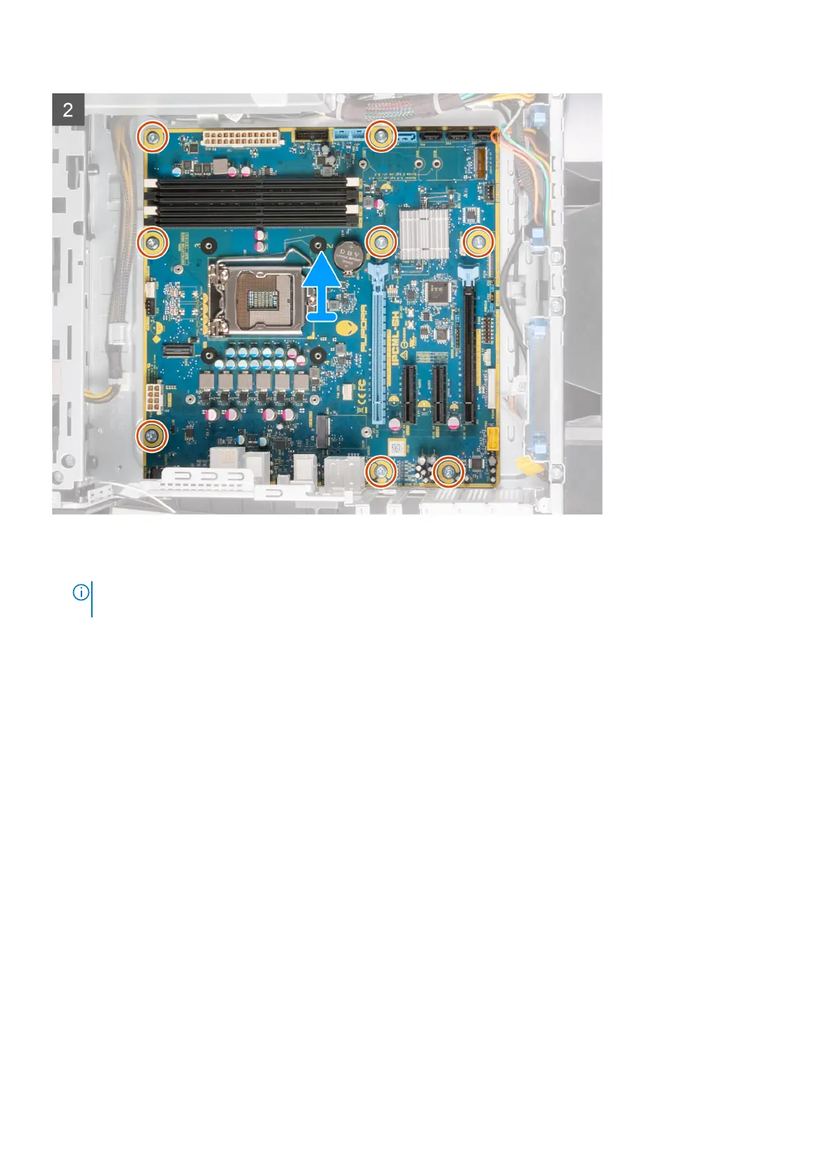 The following images indicate the location of the system board and provides a visual representation of the installation procedure.