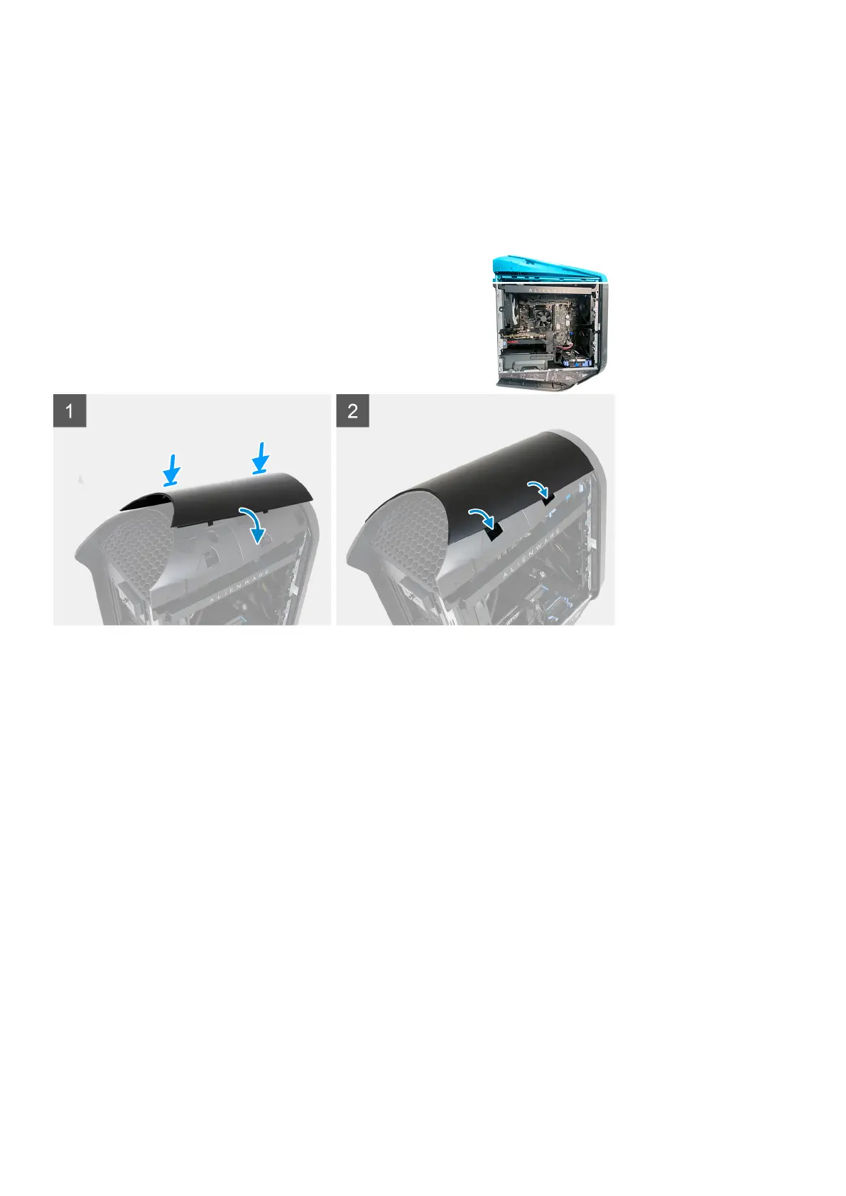 The following images indicate the location of the top cover and provides a visual representation of the installation procedure.