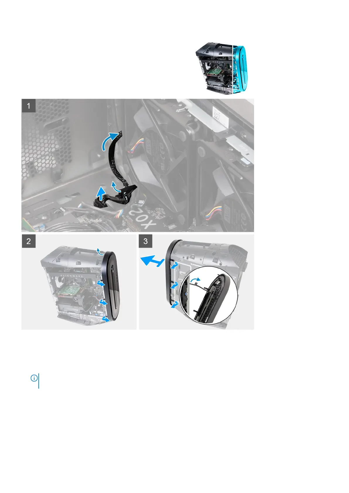 4. Pull the front bezel, together with the front I/O-panel cable, away from the chassis slowly.