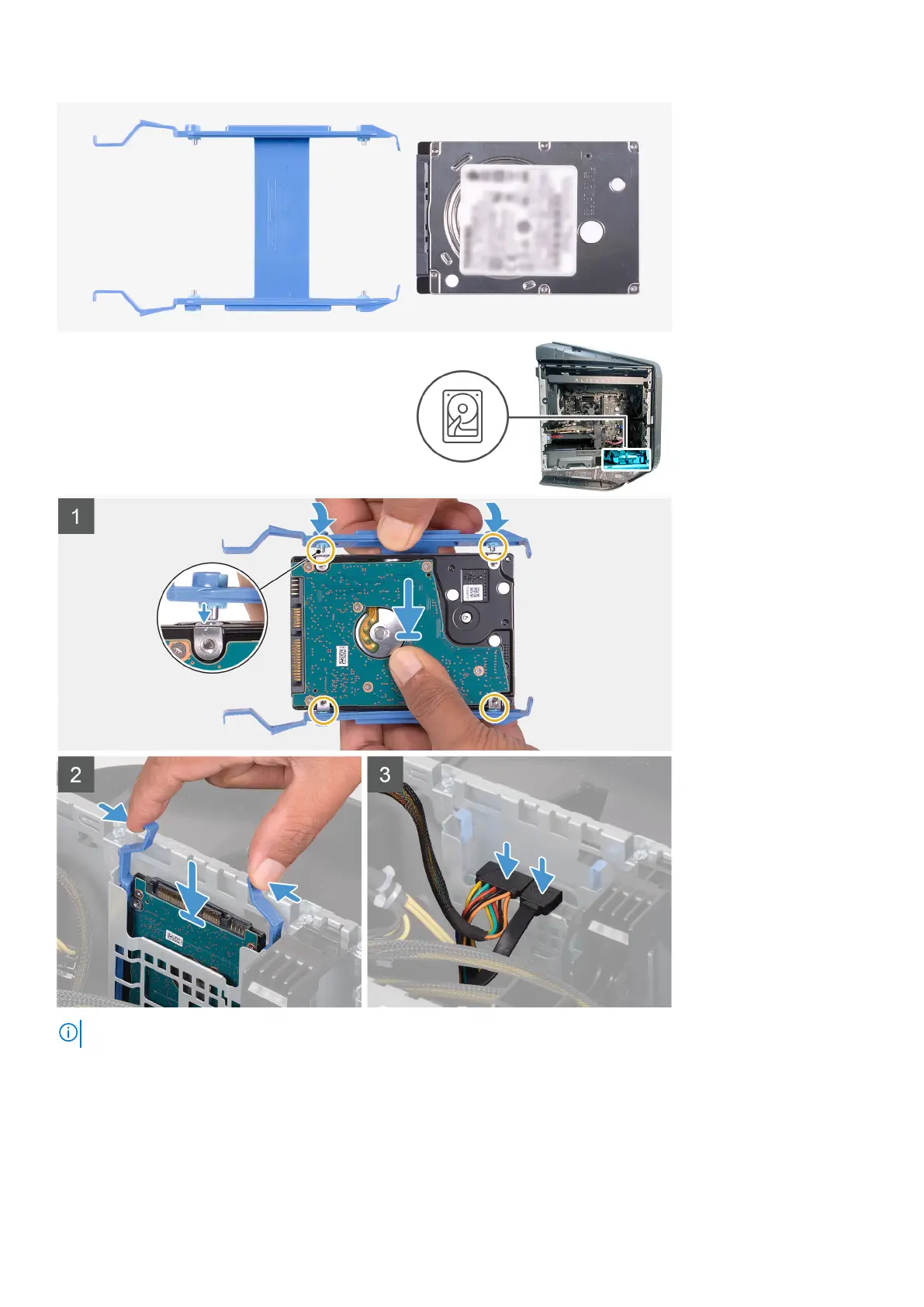 4. Connect the data and power cables to the hard drive.
