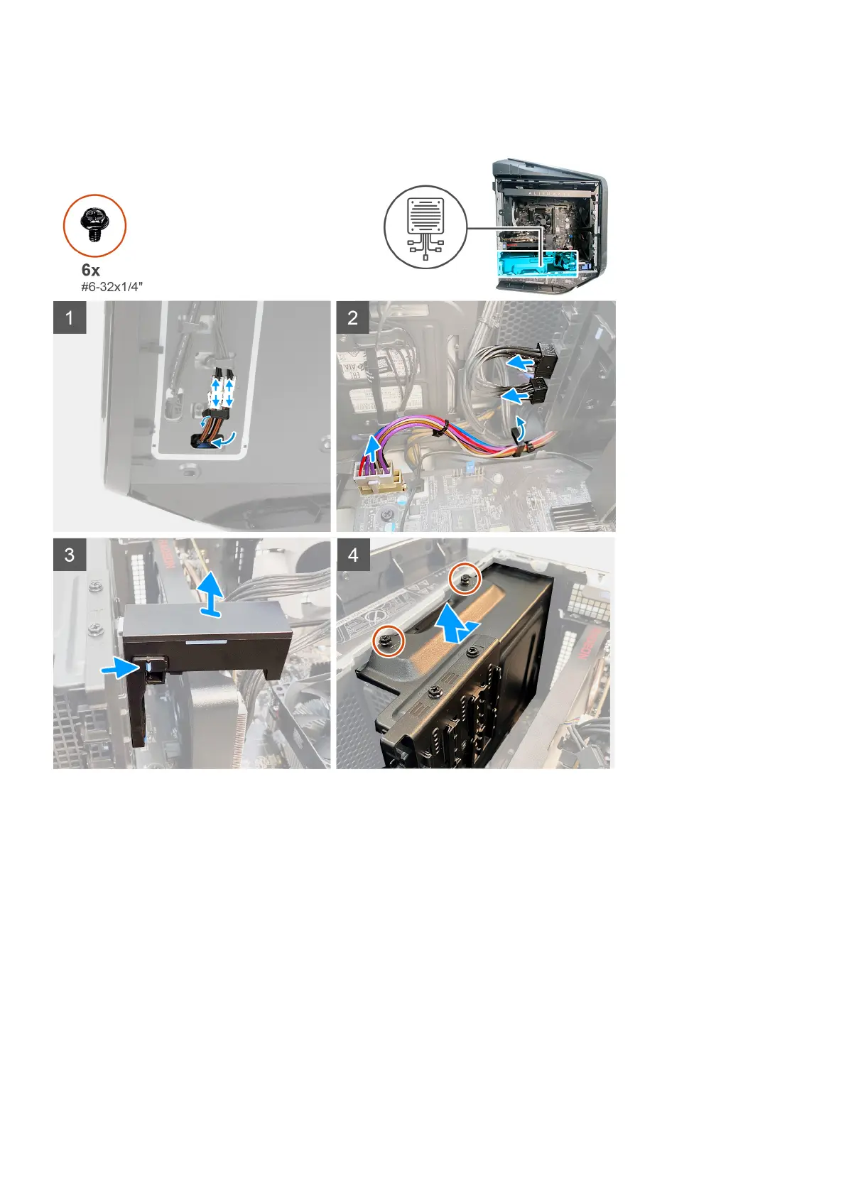 The following images indicate the location of the power-supply unit and provide a visual representation of the removal
