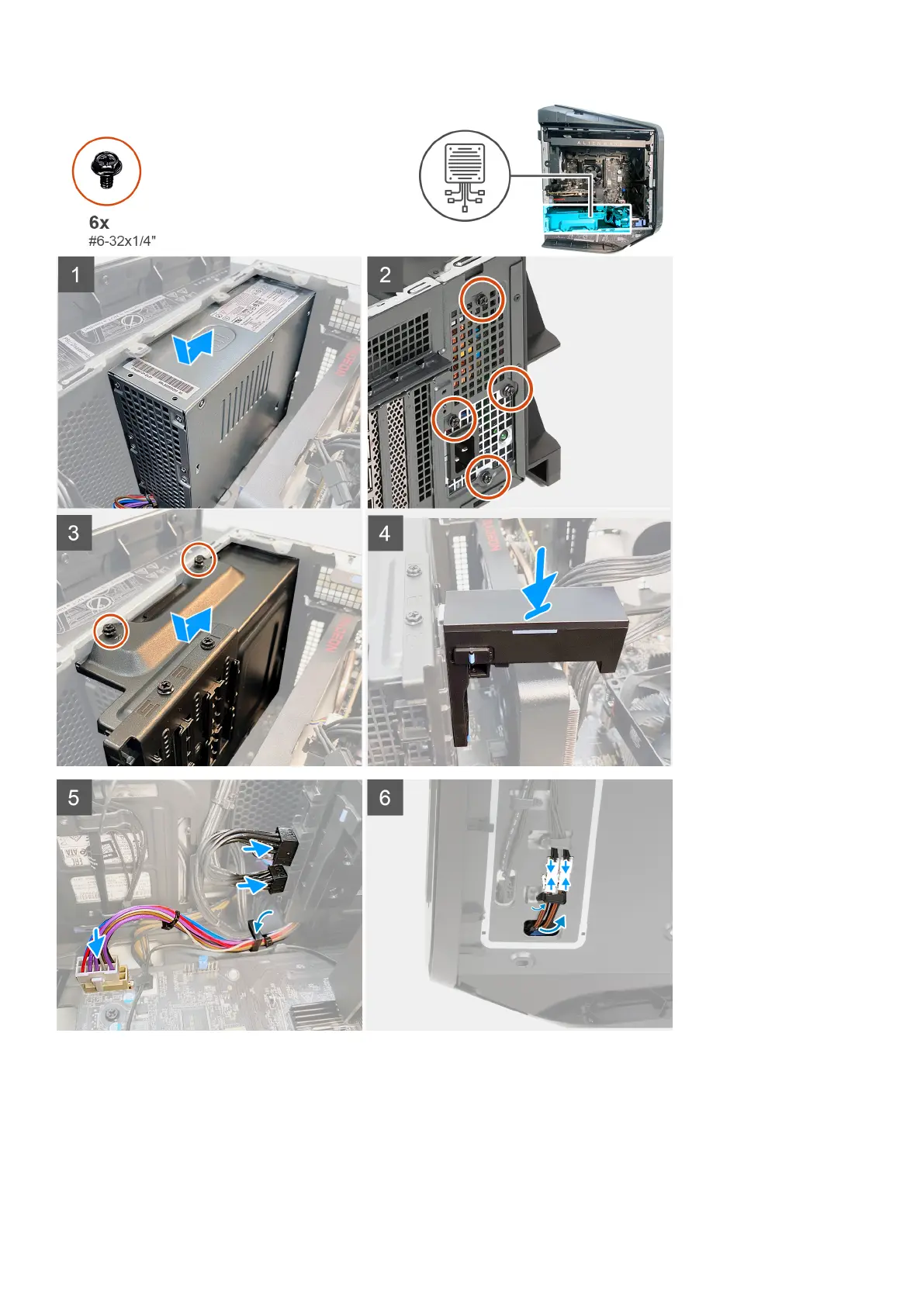 4. Replace the four screws (#6-32x1/4") that secure the power-supply unit to the chassis.