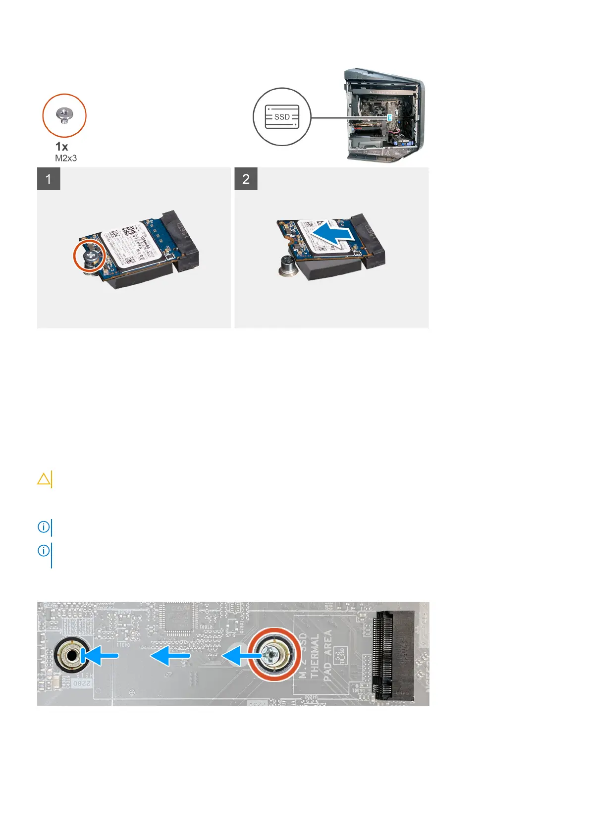 The following images indicate the location of the 2230 solid-state drive that is installed in SSD slot one and provide a visual