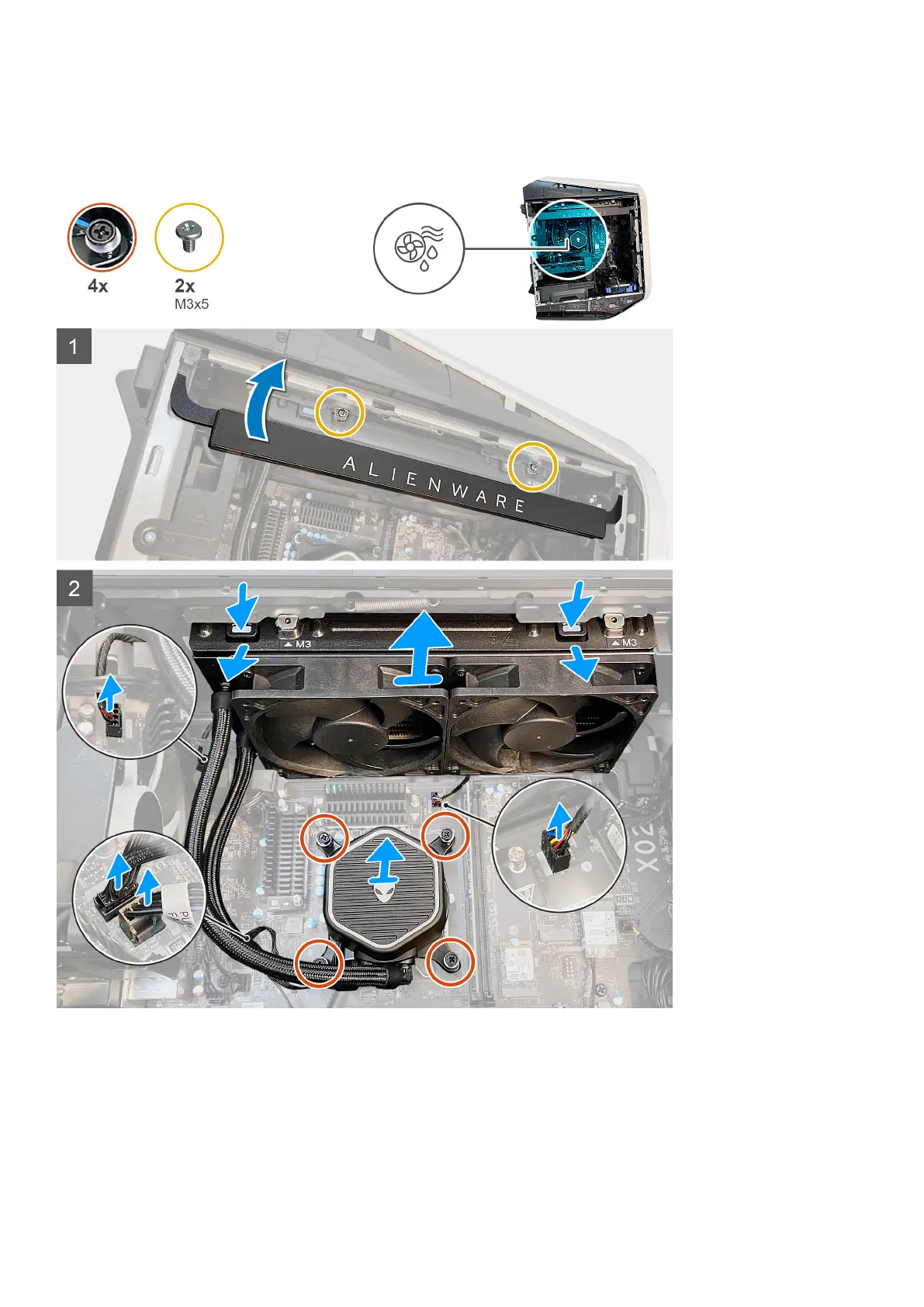3. Remove the two screws (M3x5) that secures the radiator and fan assembly to the chassis.