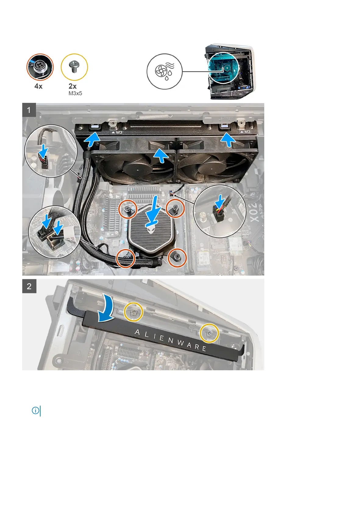 2. Replace the two screws (M3x5) that secures the radiator and fan assembly to the chassis.