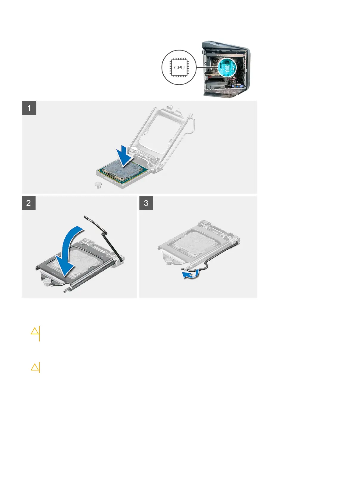 4. Push the release lever down and place it under the tab on the processor cover.