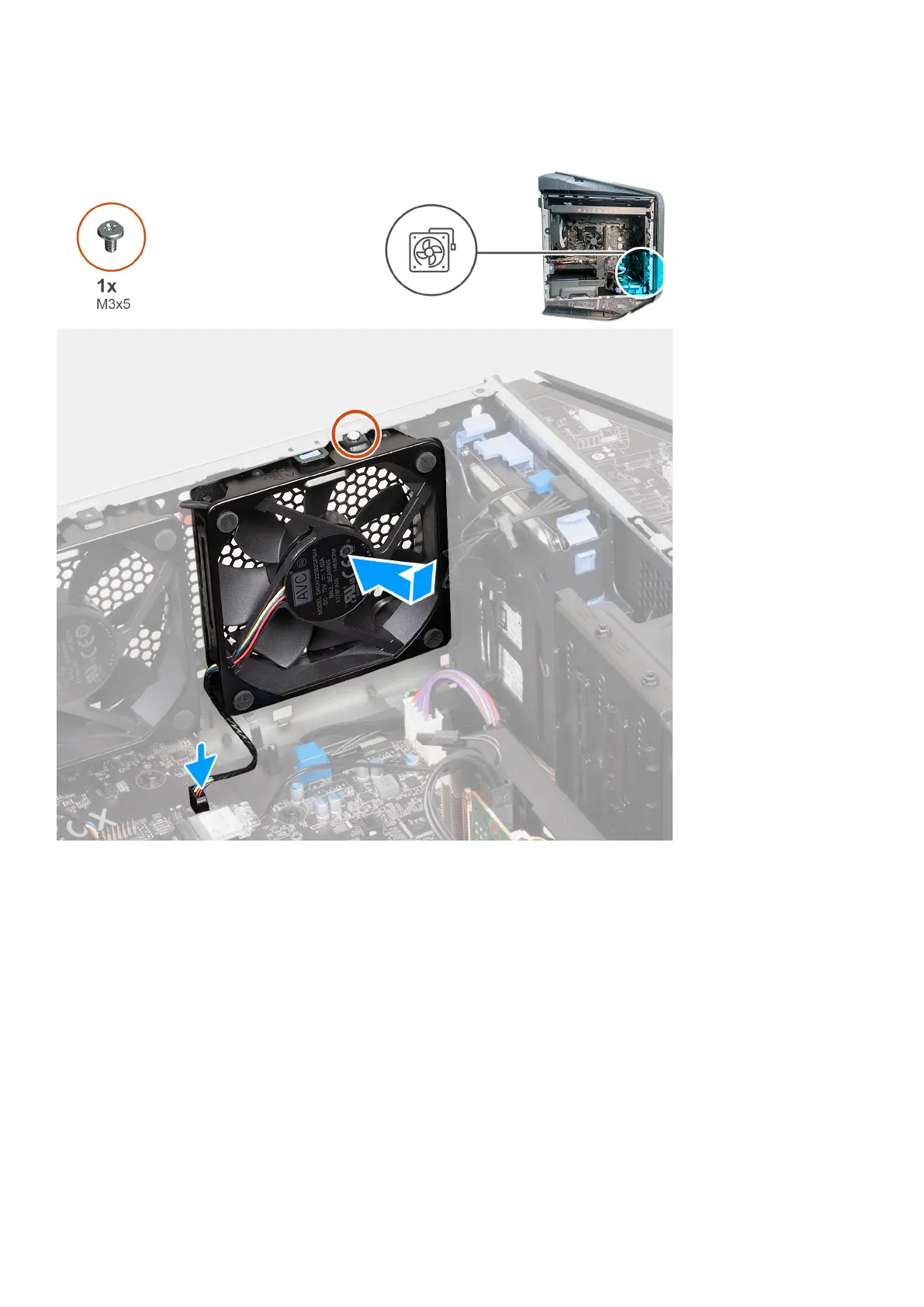4. Replace the screw (M3x5) that secures the lower front-chassis fan to the chassis.