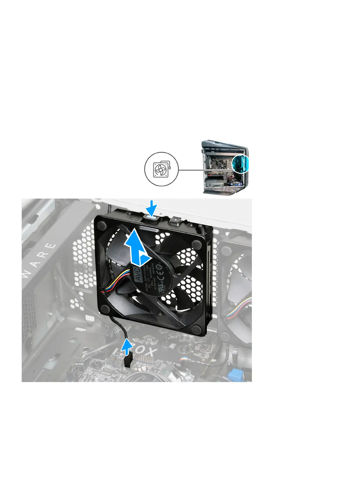 4. Slide and lift the upper front-chassis fan from the chassis.