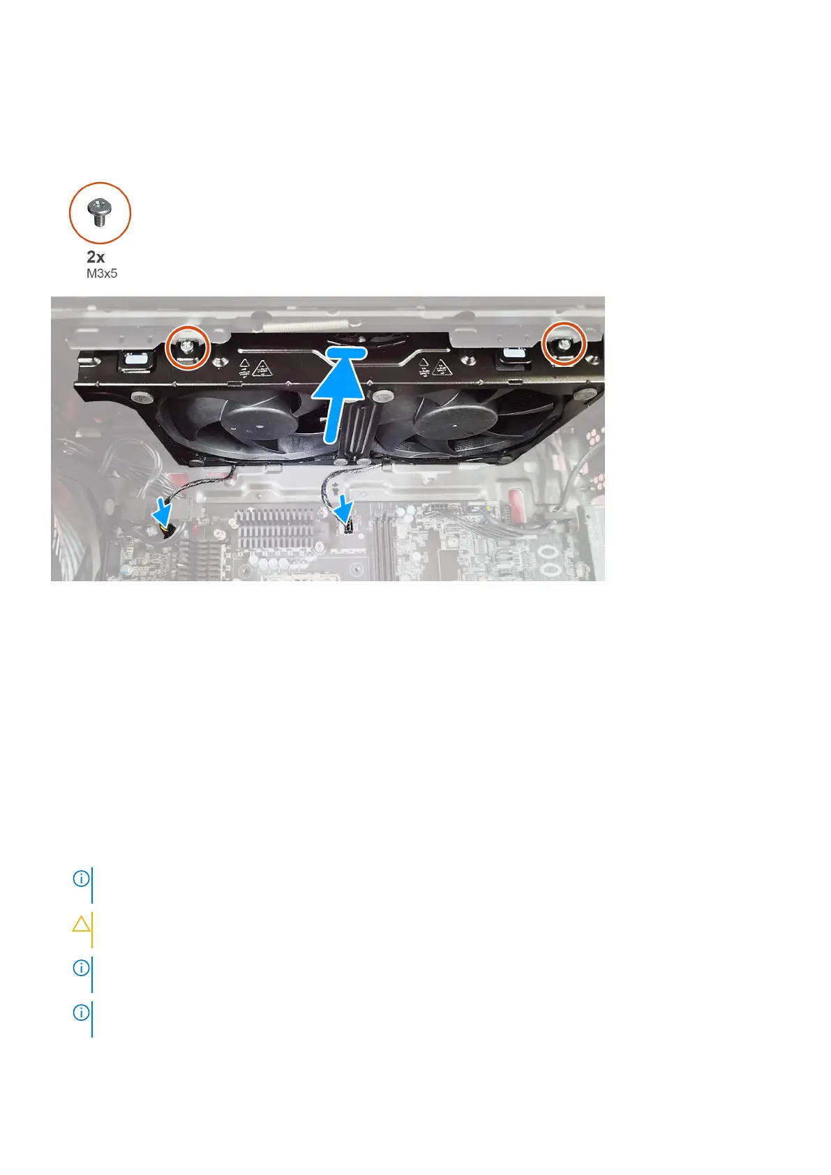 4. Replace the two screws (M3x5) that secures the top-chassis fan to the chassis.