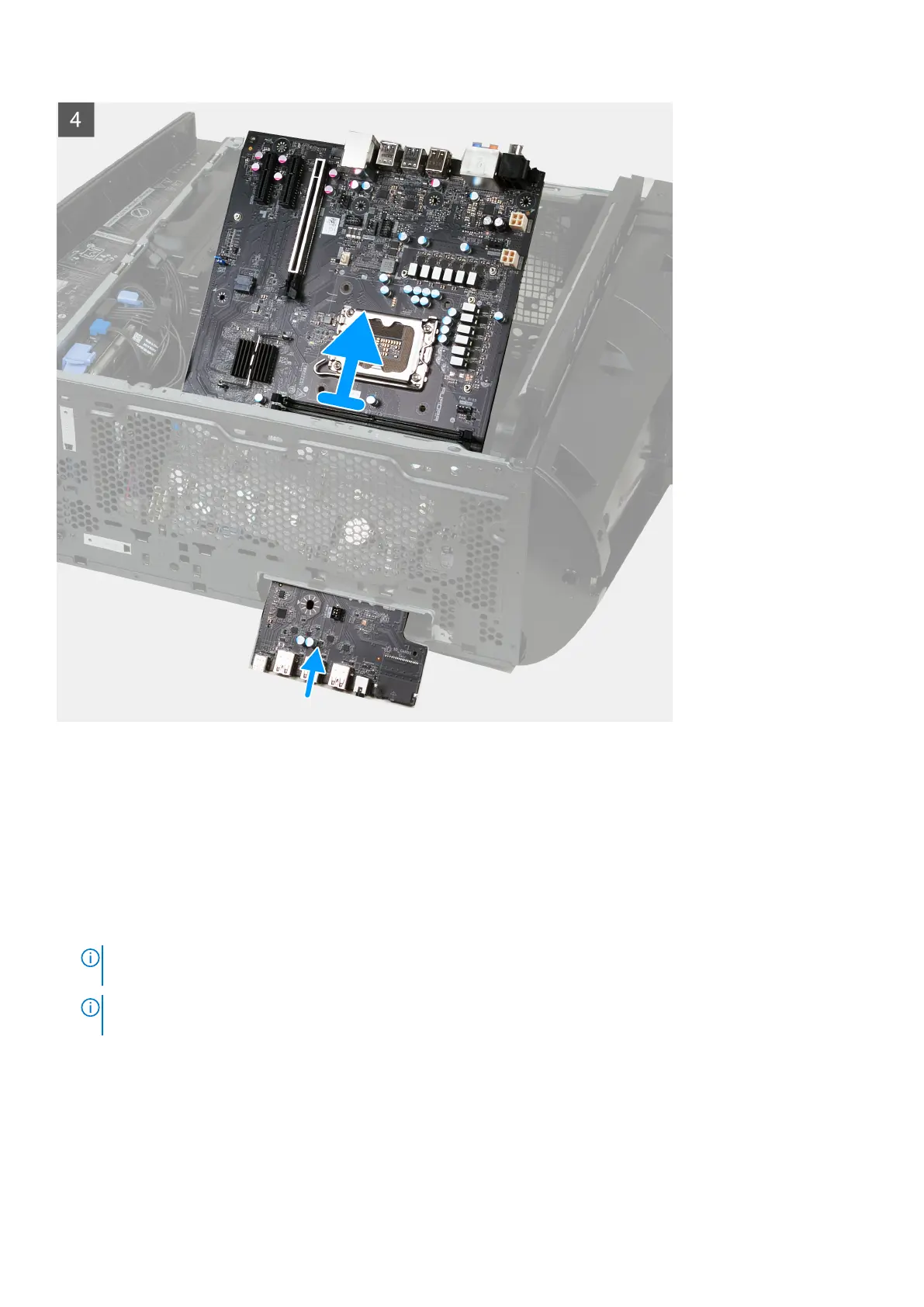 11. Hold the edge of the system board where the front I/O-ports are located.