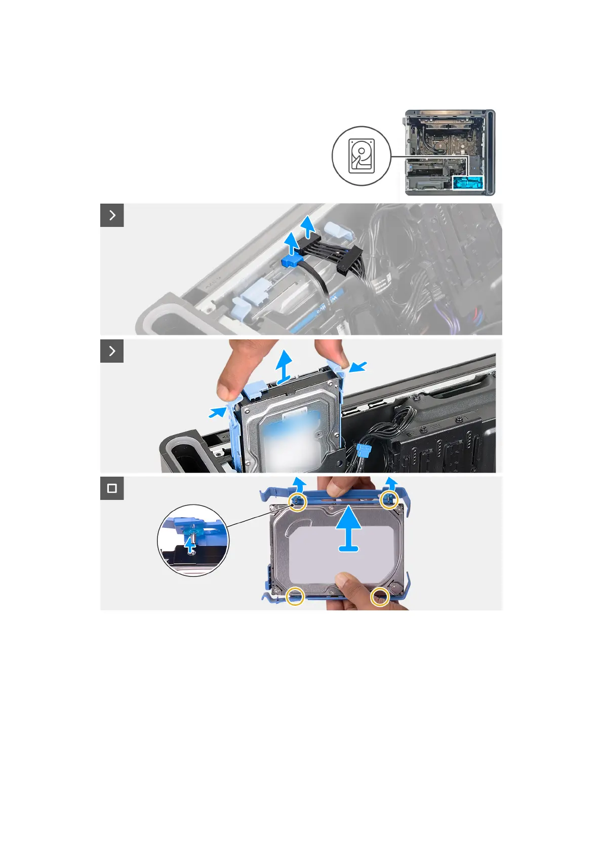The following images indicate the location of the 3.5-inch hard drive and provide a visual representation of the removal procedure.