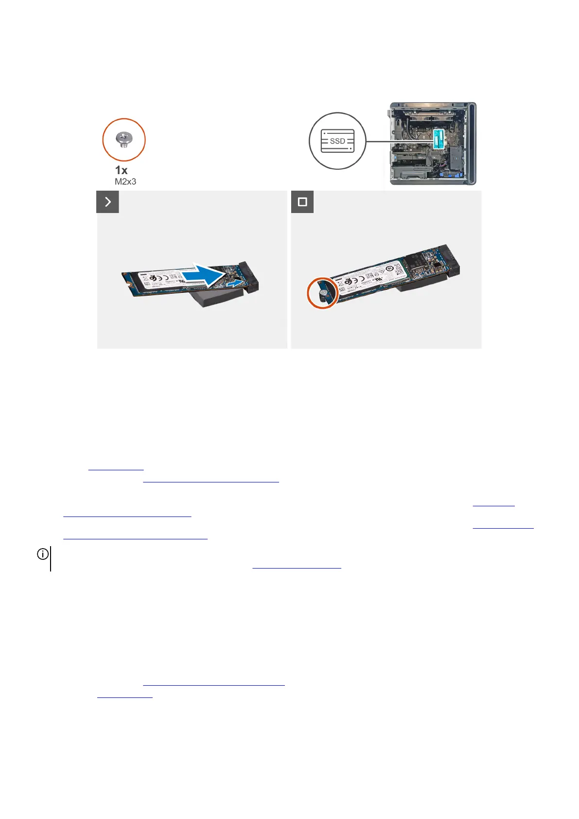 The following images indicate the location of the M.2 2280 solid-state drive that is installed in SSD slot one/slot two and provide a