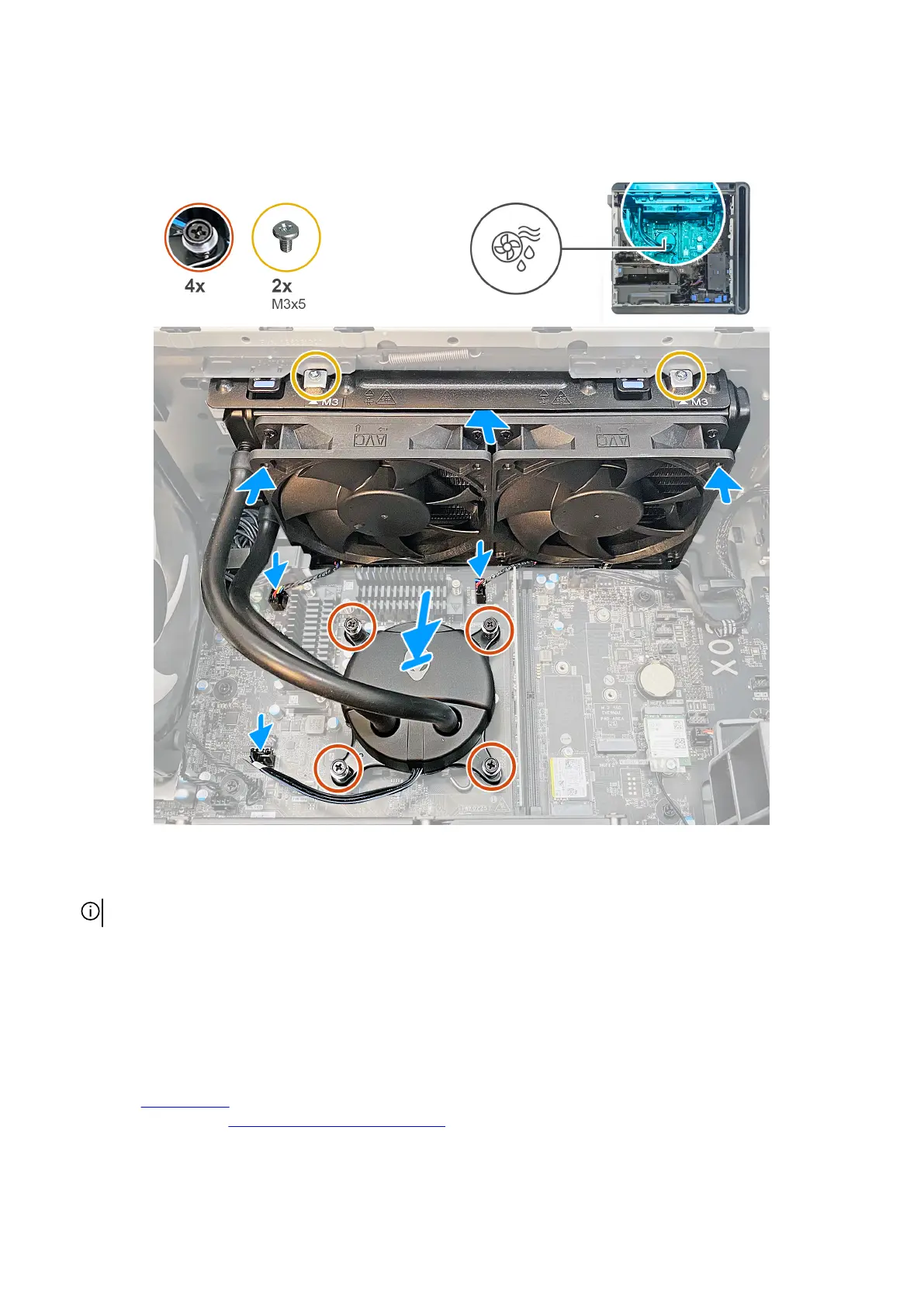 2. Replace the two screws (M3x5) that secures the radiator and fan assembly to the chassis.