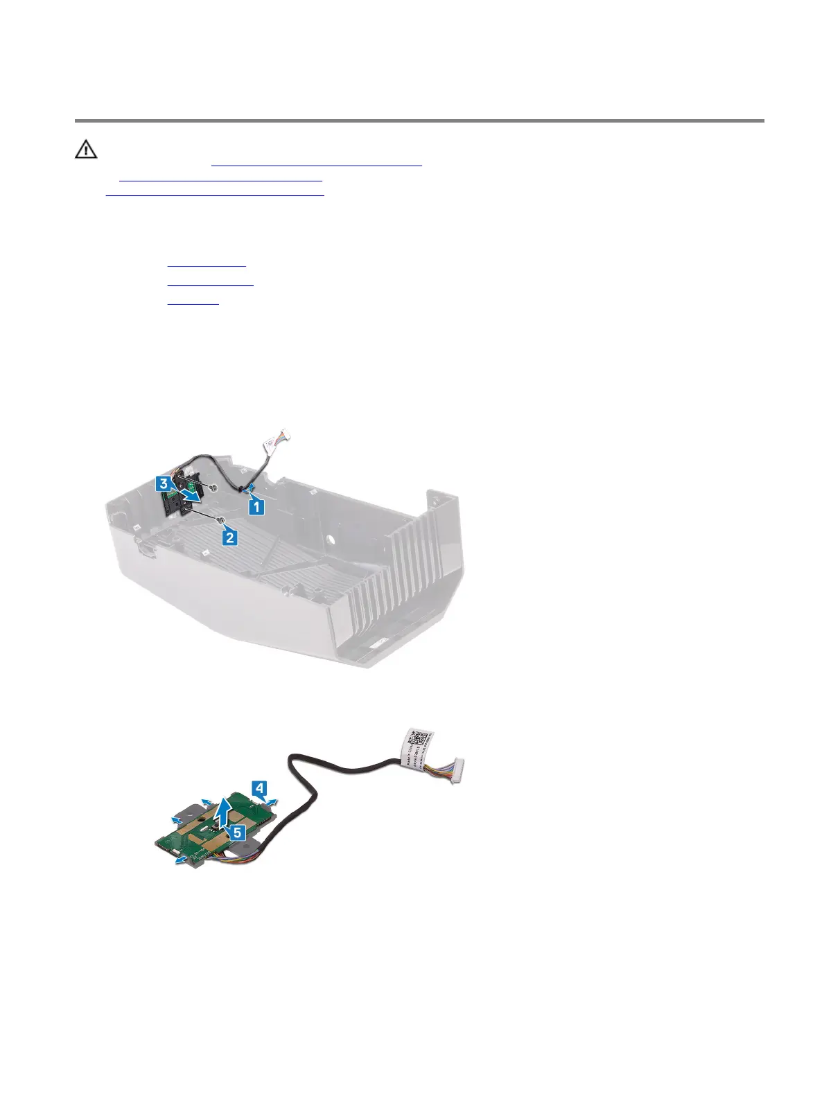 5 Lift the power-button board along with the cable o the power-button board bracket.