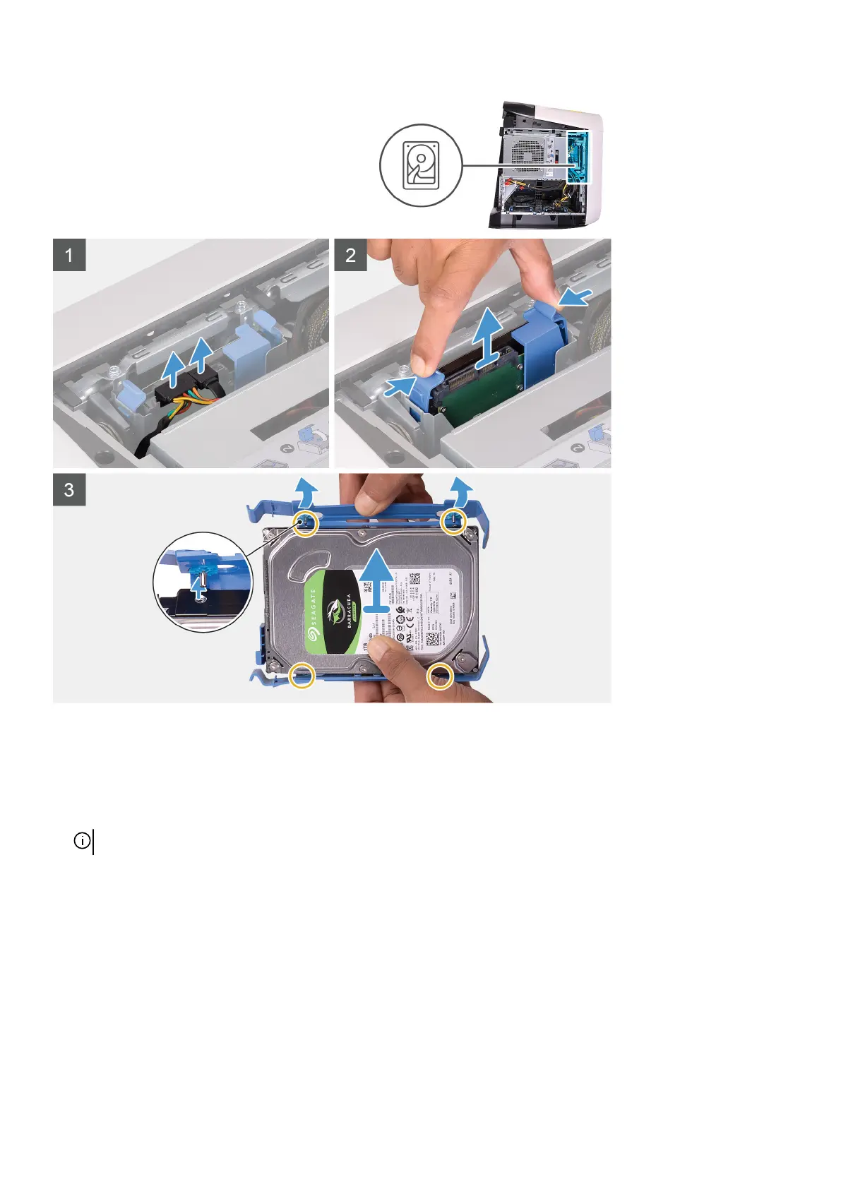 The following images indicate the location of the 3.5-inch hard drive and provides a visual representation of the installation