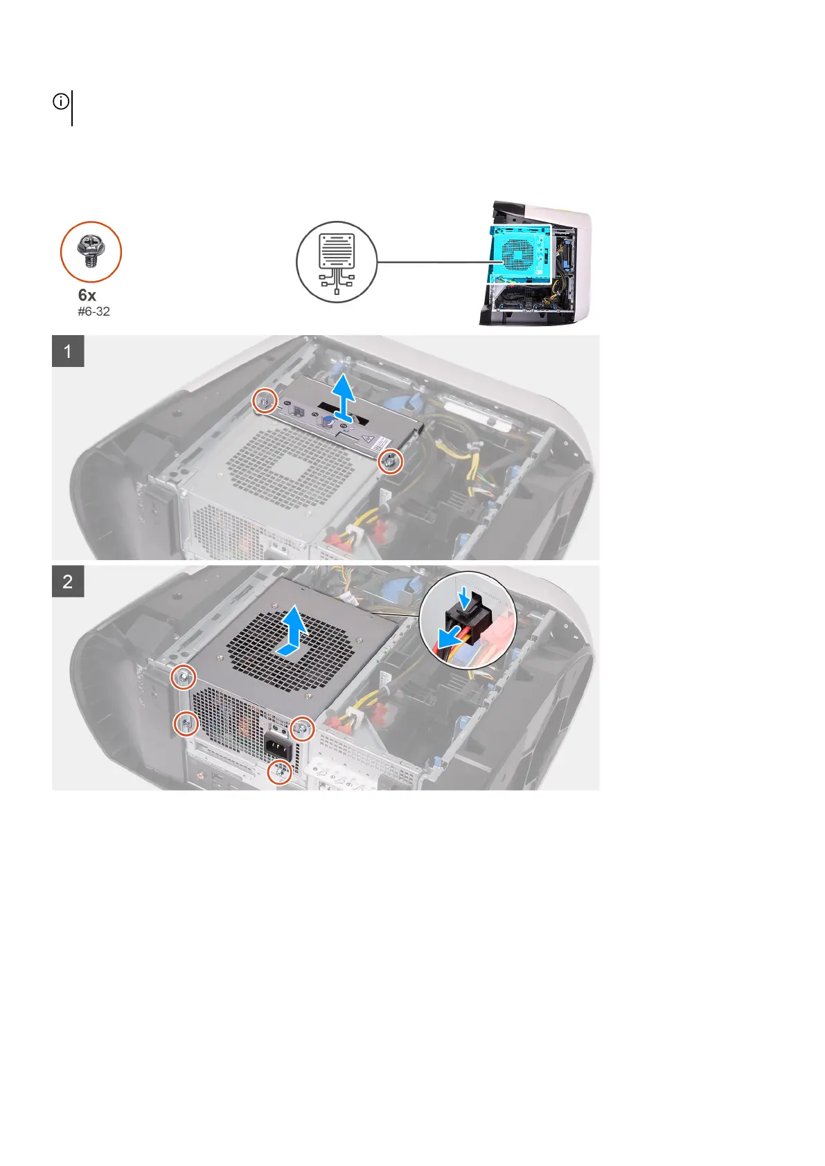 The following images indicate the location of the power-supply unit and provides a visual representation of the removal procedure.