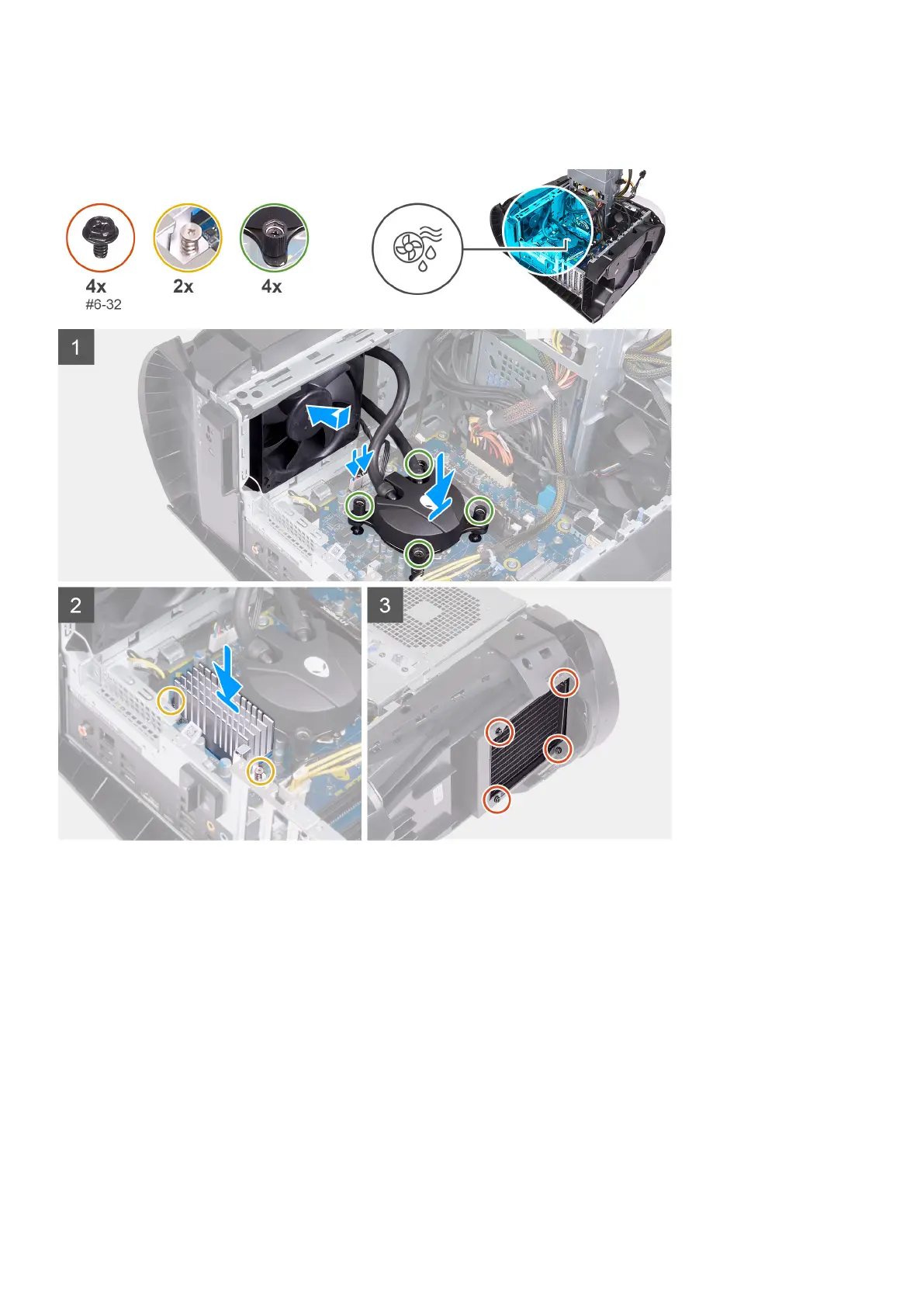 The following images indicate the location of the processor liquid-cooling assembly and provides a visual representation of the