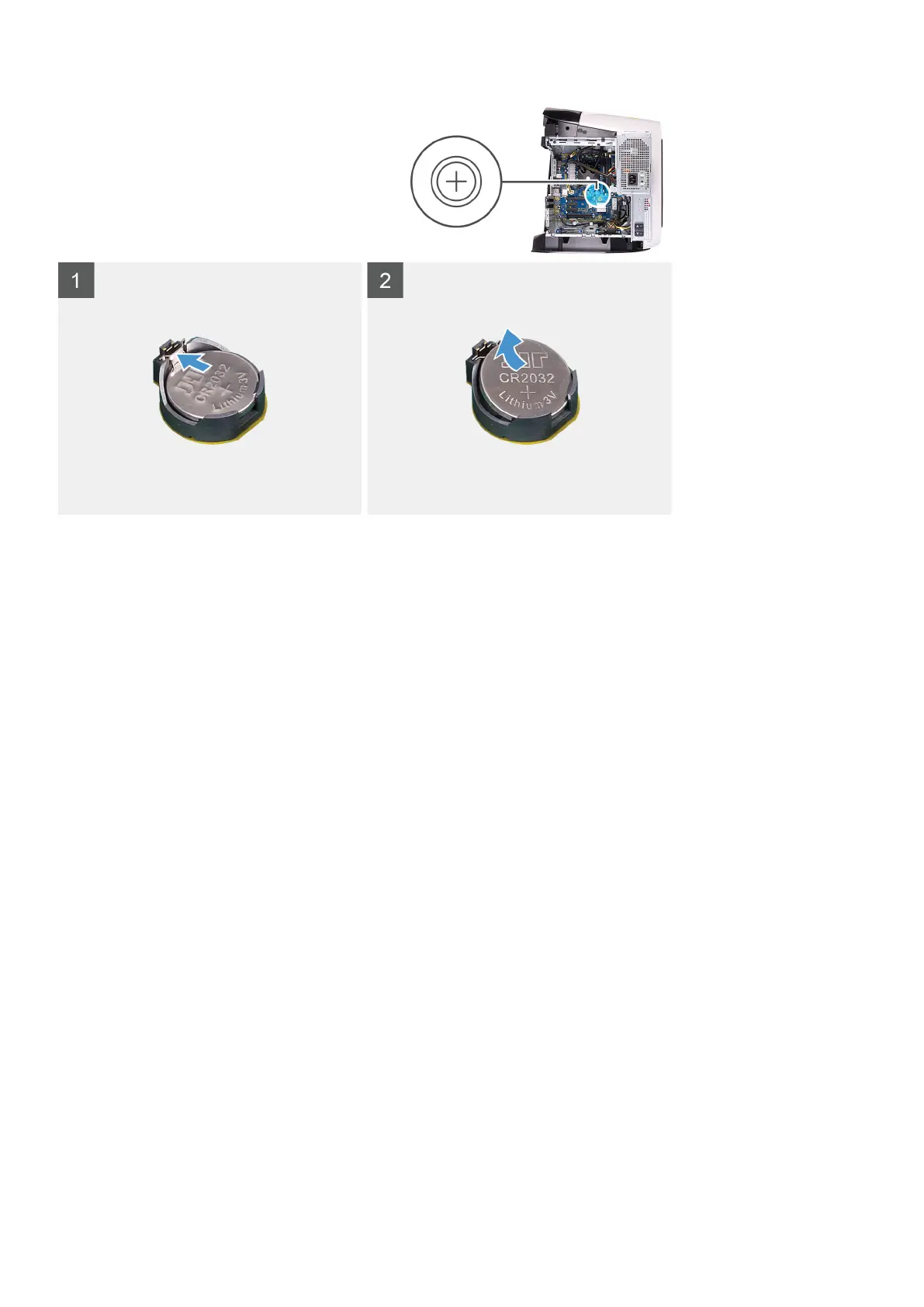 The following images indicate the location of the coin-cell battery and provides a visual representation of the installation procedure.