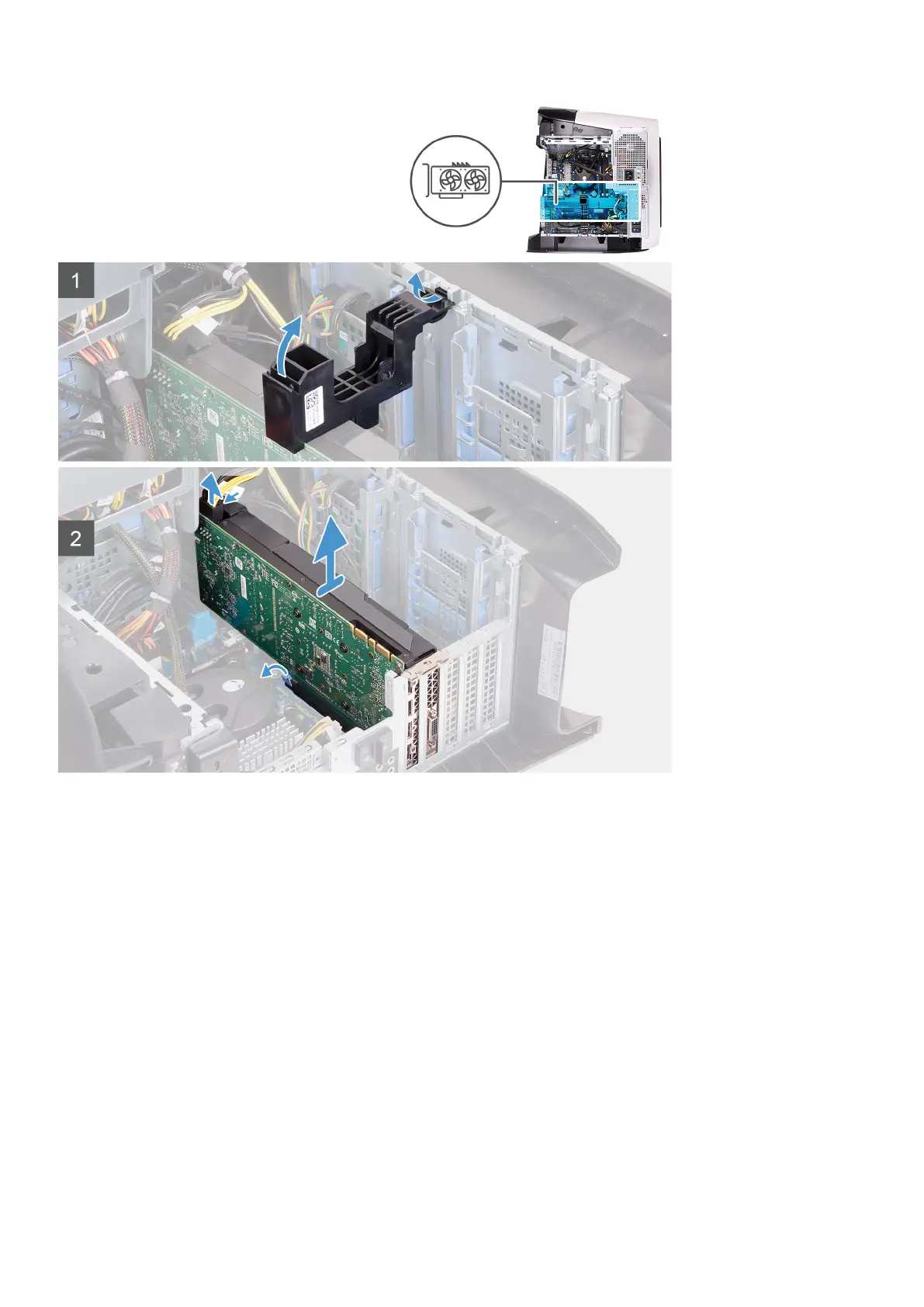 7. Push the securing tab on the PCIe slot away from the graphics card, grasp the card by its top corner, and ease it out of the slot.