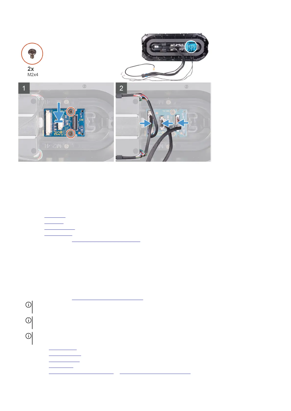 2. Replace the two screws (M2x4) that secure the power-button module to the front bezel.