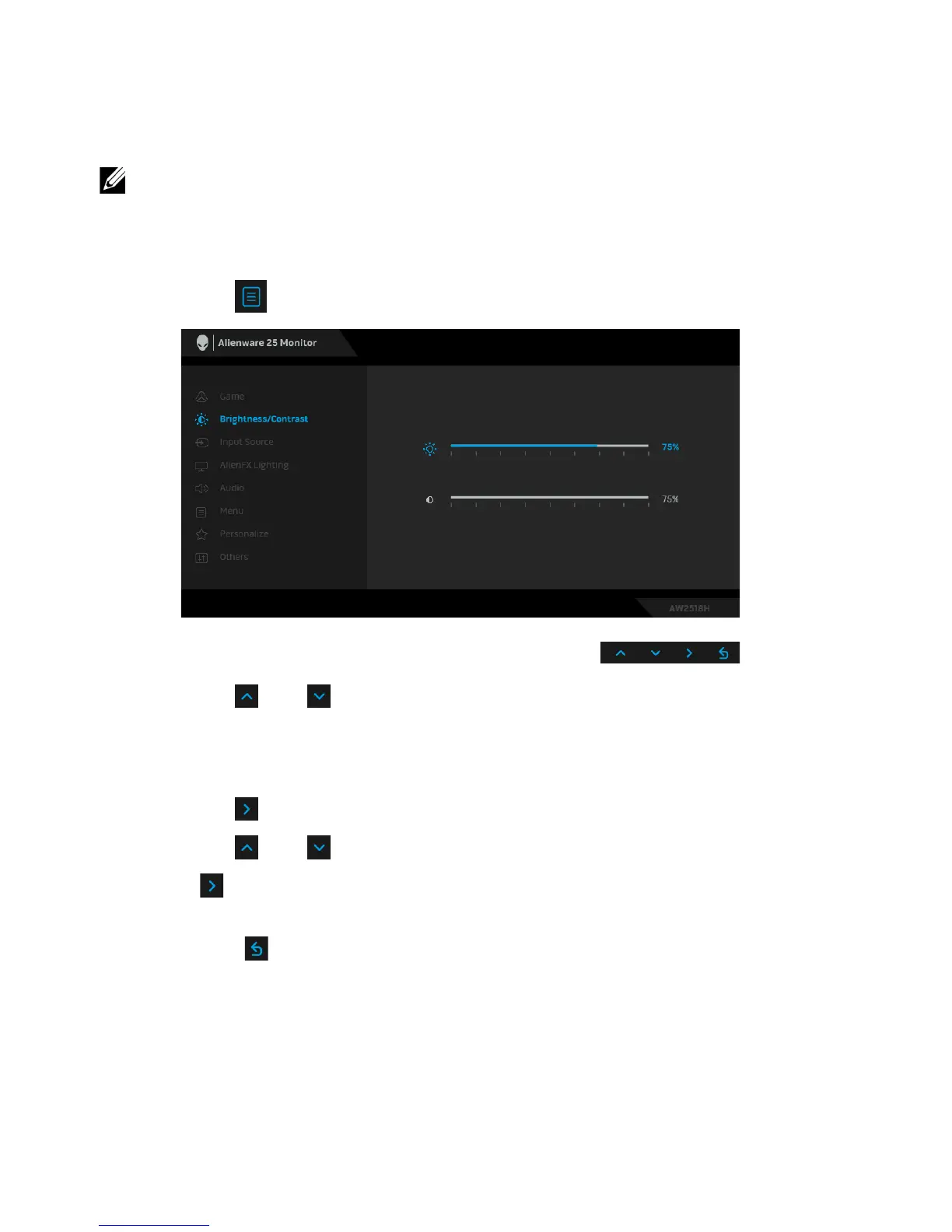 2. Press the and buttons to move between the setting options. As you
