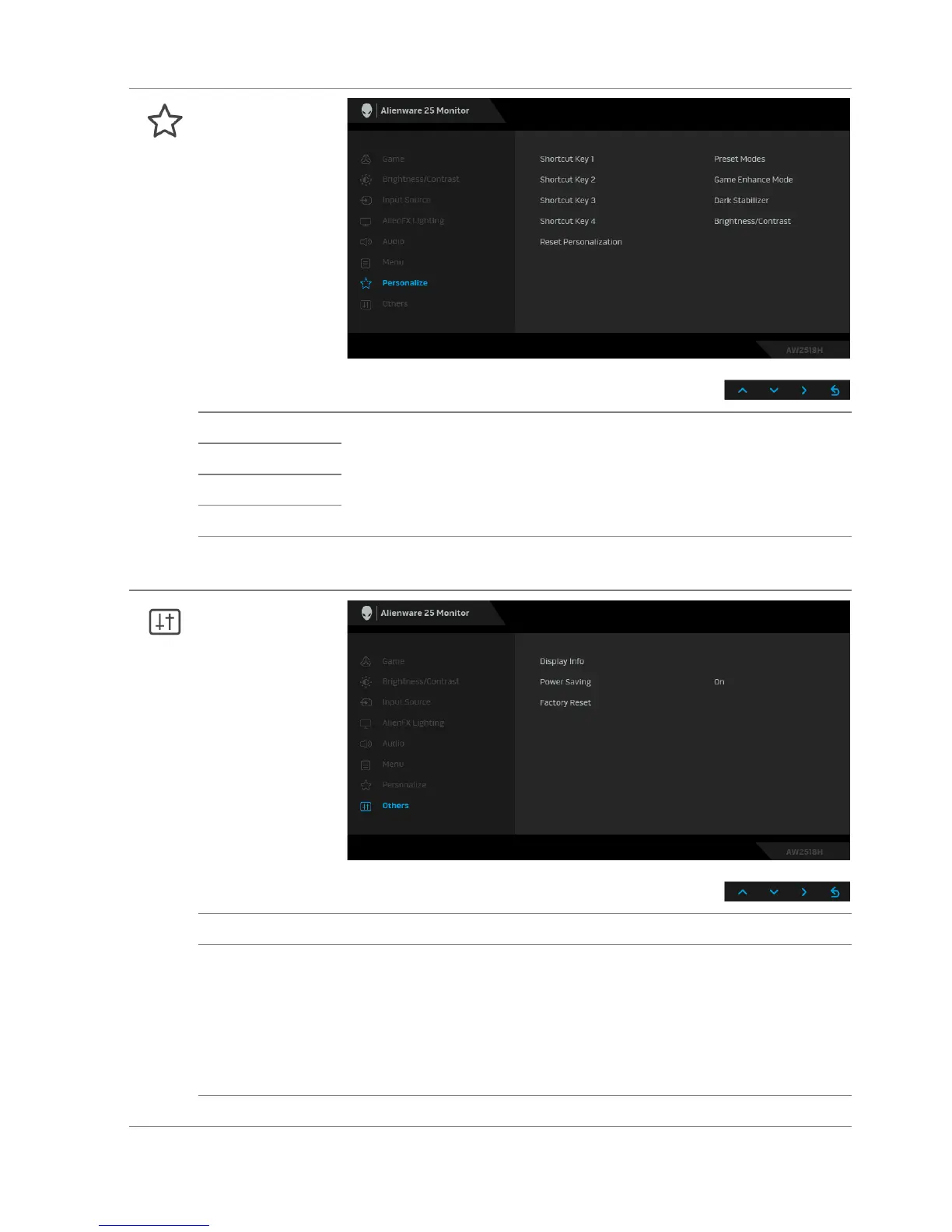 Shortcut Key 1 Allows you to choose a feature from Preset Modes, Game