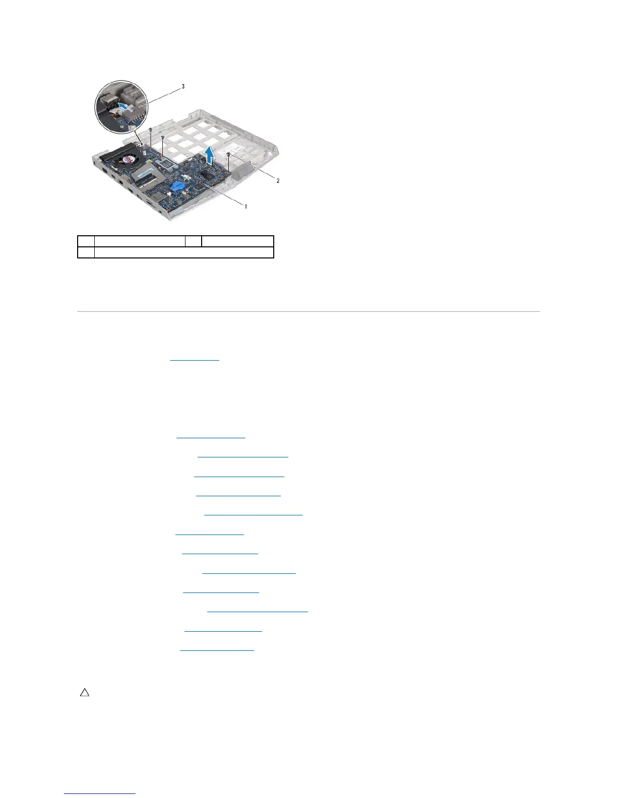 16. Remove the three screws that secure the system board to the computer base.