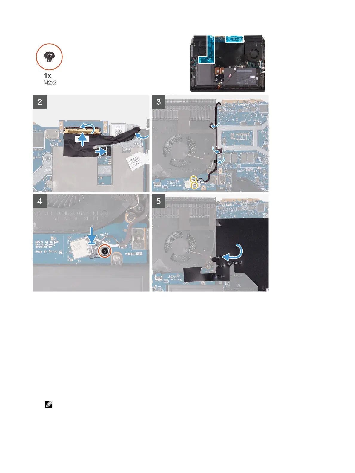 3 Replace the six screws (M2.5x5) that secure the display assembly to the palm-rest assembly.