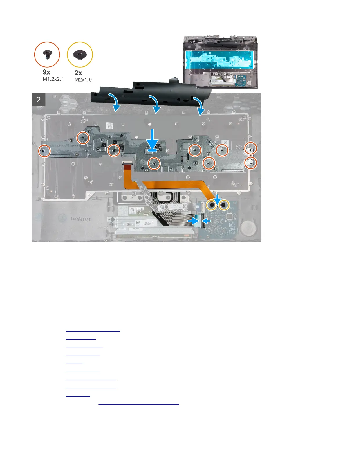 4 Replace the nine (M1.2x2.1) screws that secure the keyboard bracket to the keyboard.