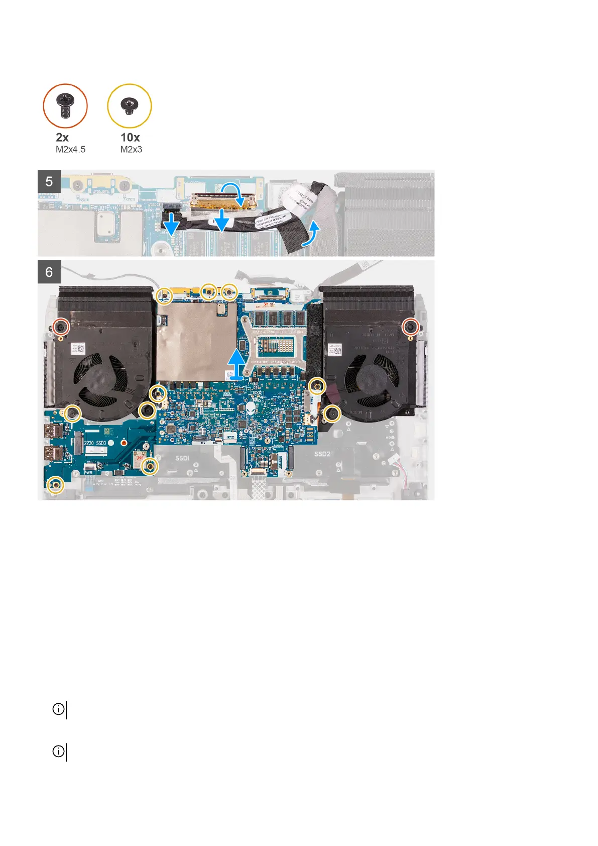 8. Remove the three screws (M2x4.5) that secures the M.2 SSD frame to the system board.